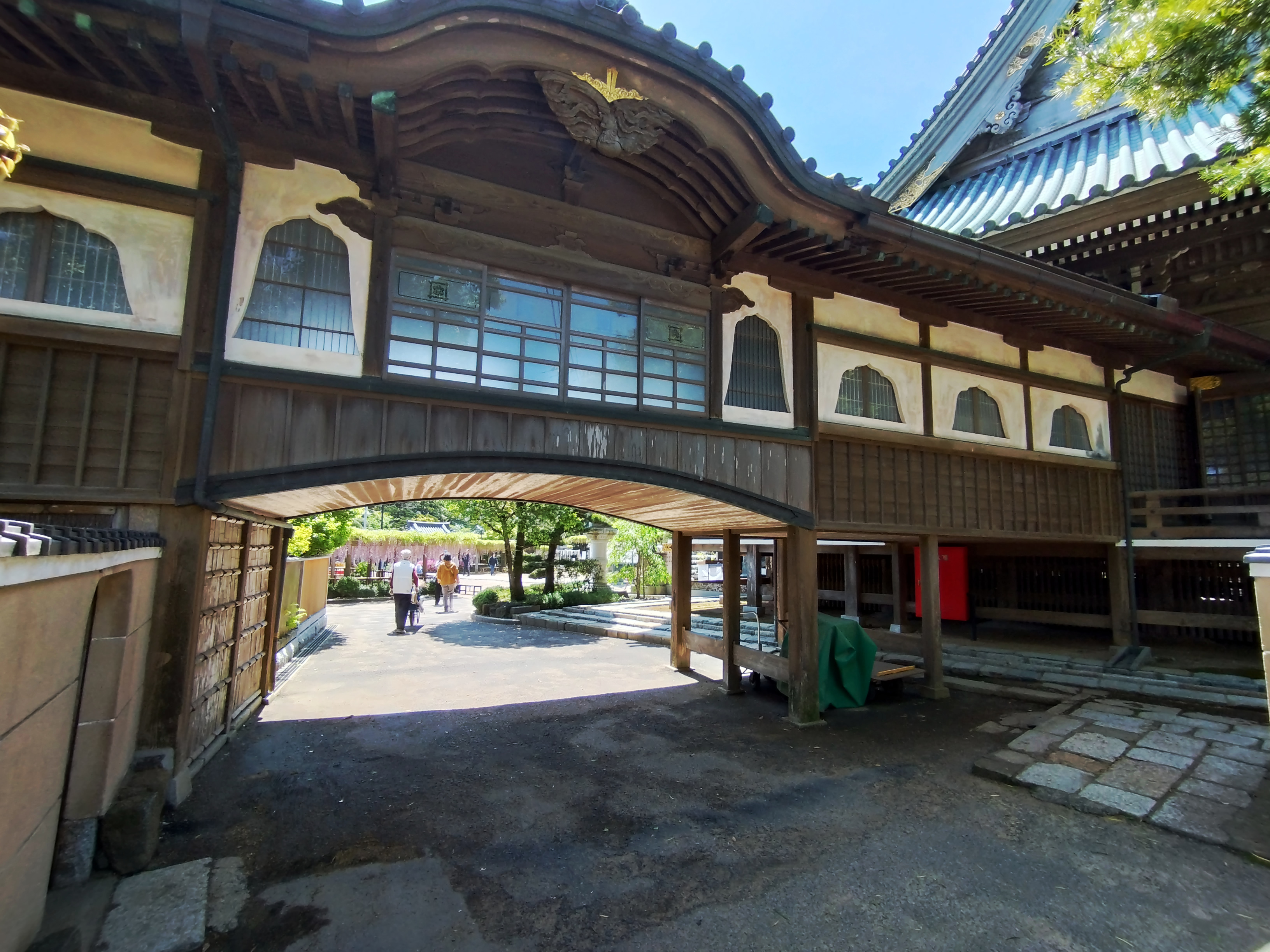 通本橋は、妙福寺の大本堂と大客殿を結ぶ屋根付きの渡り廊下で、境内の中心的な構造物の一つ
