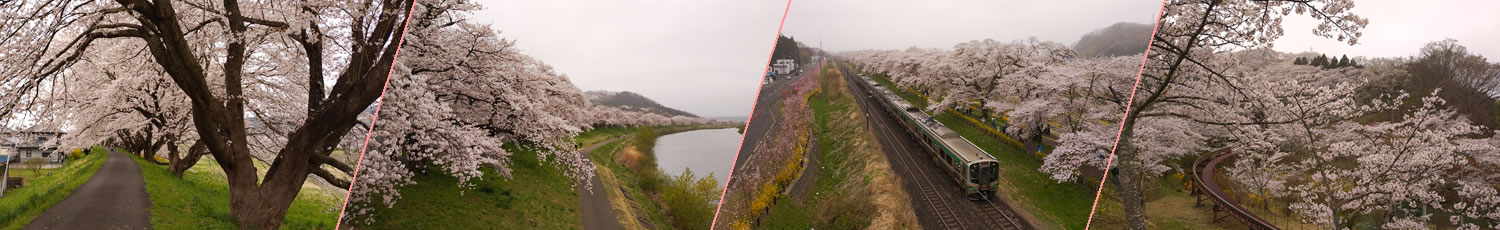 白石川堤一目千本桜(しろいしがわづつみ ひとめせんぼんざくら))は、宮城県柴田郡大河原町から柴田町にかけて、白石川沿い約8kmにわたって続く桜並木です。桜のトンネルの中をゆったり歩くのは最高の癒し体験