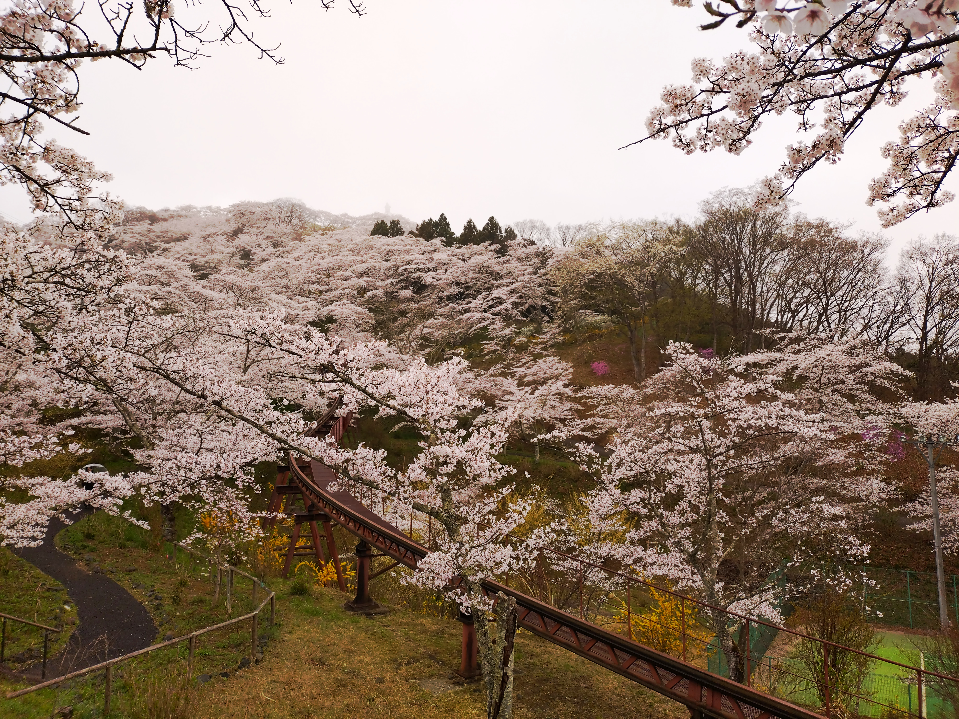 写真2025年4月13日 樅ノ木は残った展望デッキから三連桜