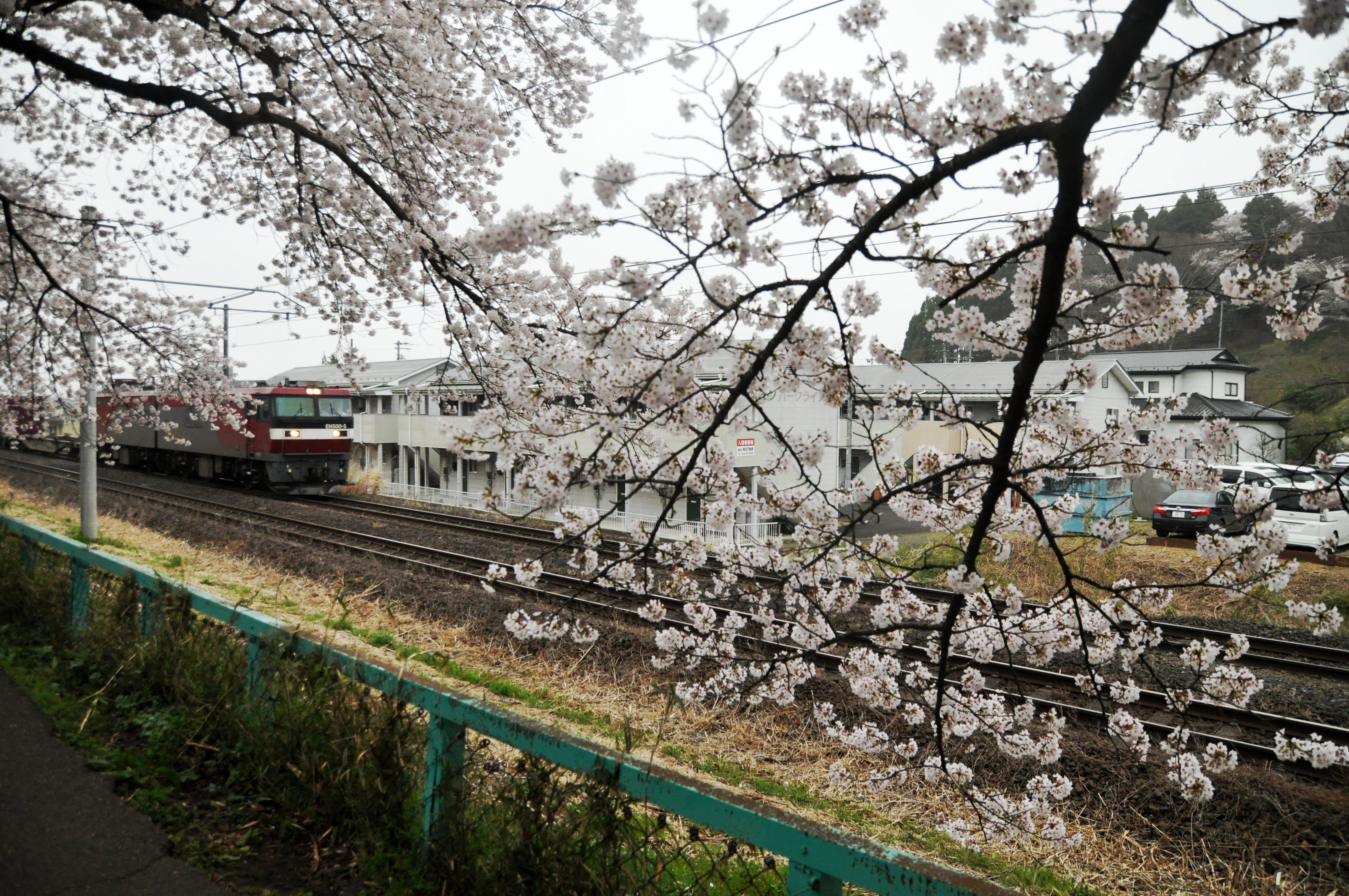 桜と貨物列車 急に貨物列車が来たので慌てて撮りました。