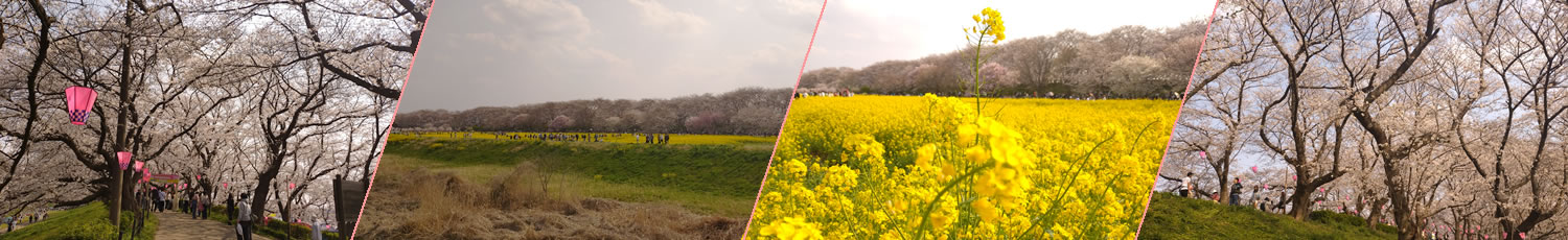 | 注目スポット | 菜の花越しの桜堤 | 菜の花の反対側の桜 |