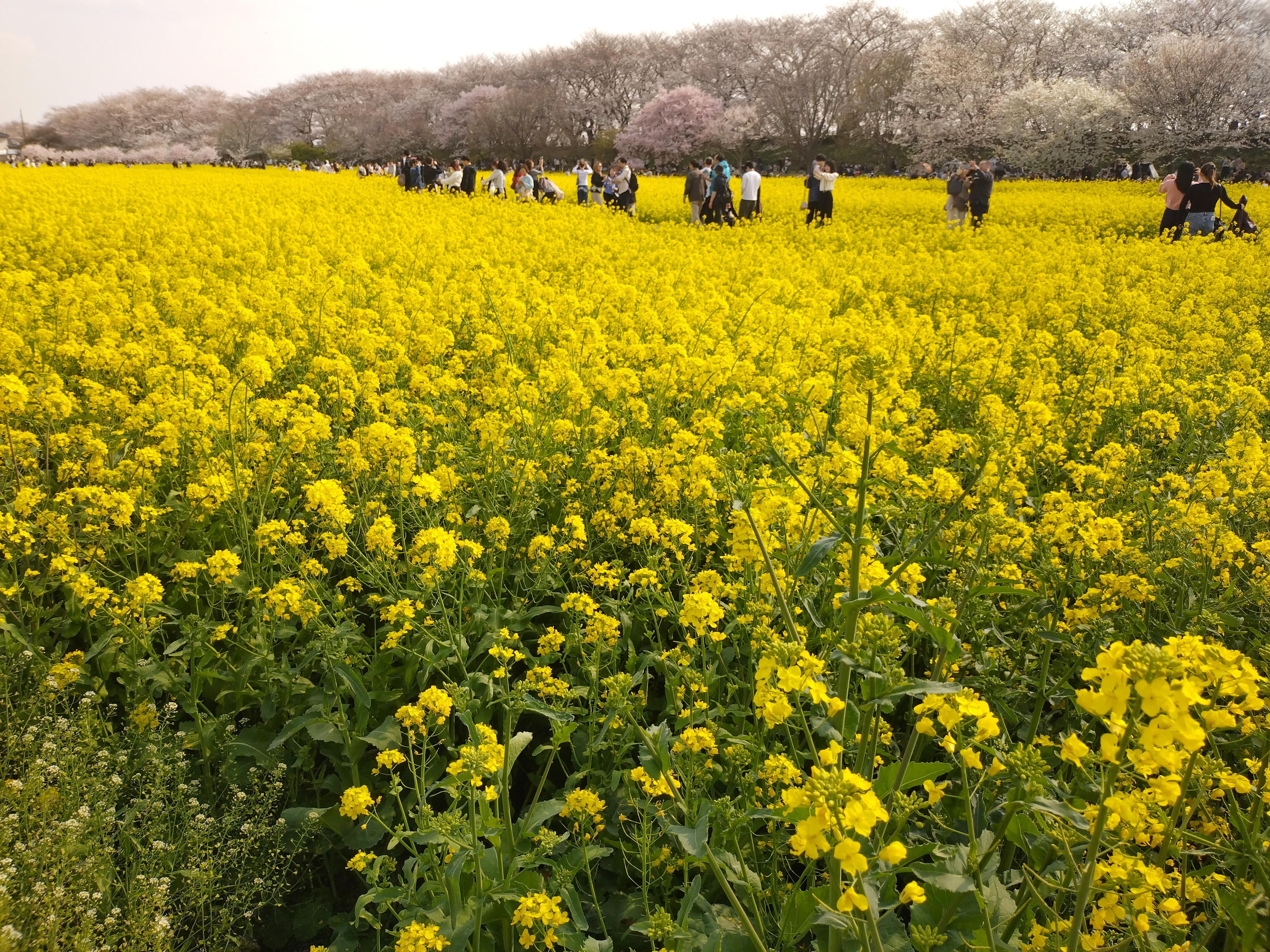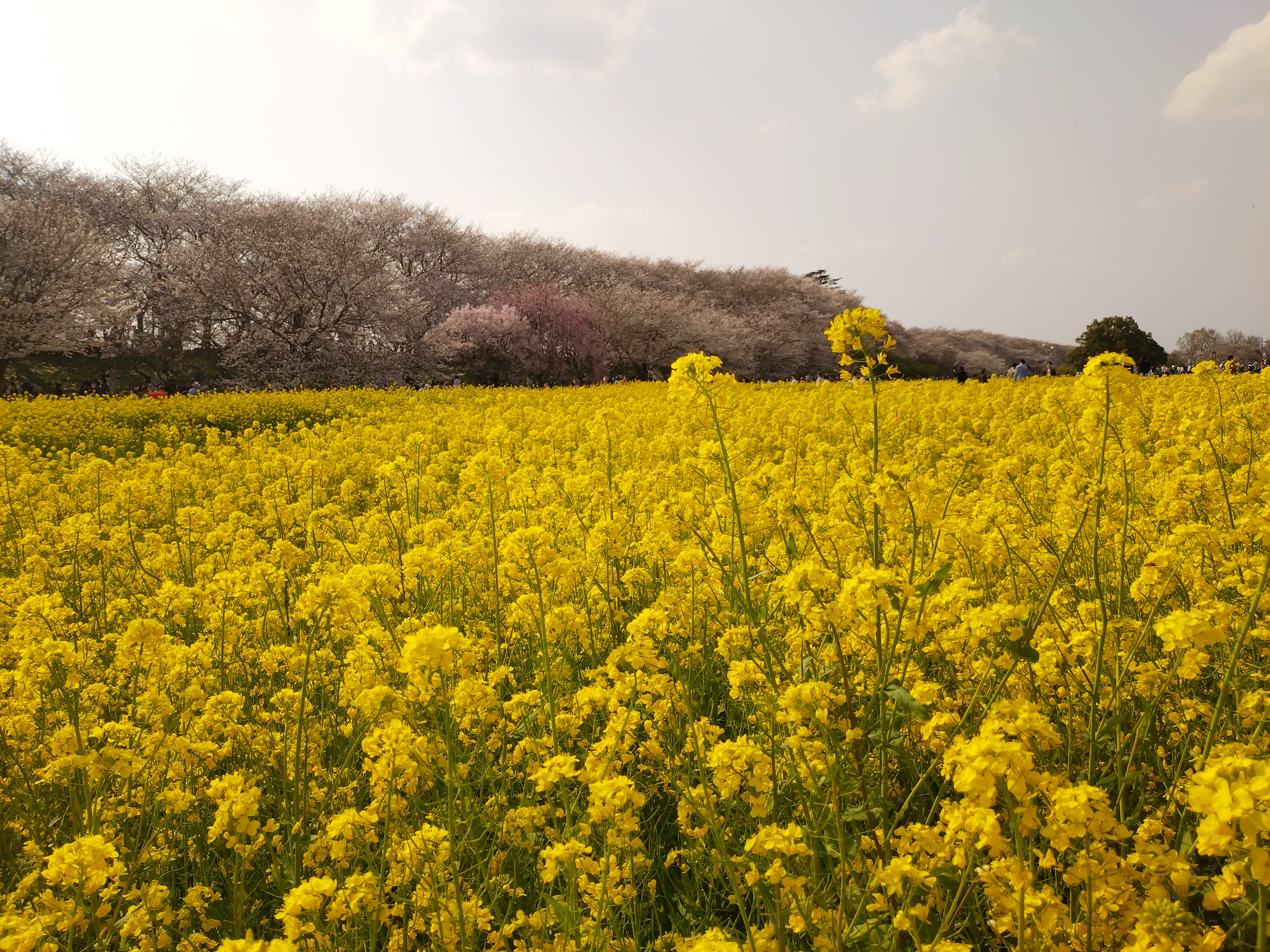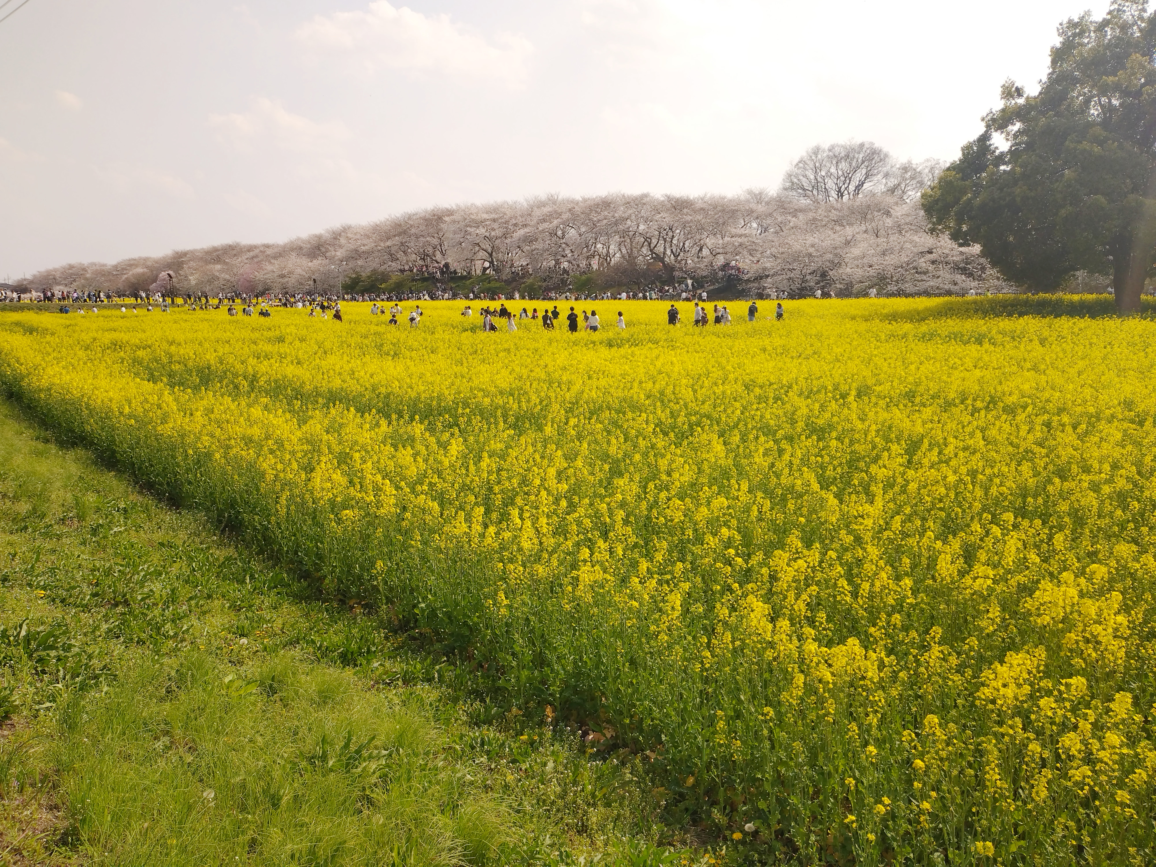 | 菜の花の反対側の桜 | 桜が密集していて 人が少なく魅力的です。 |