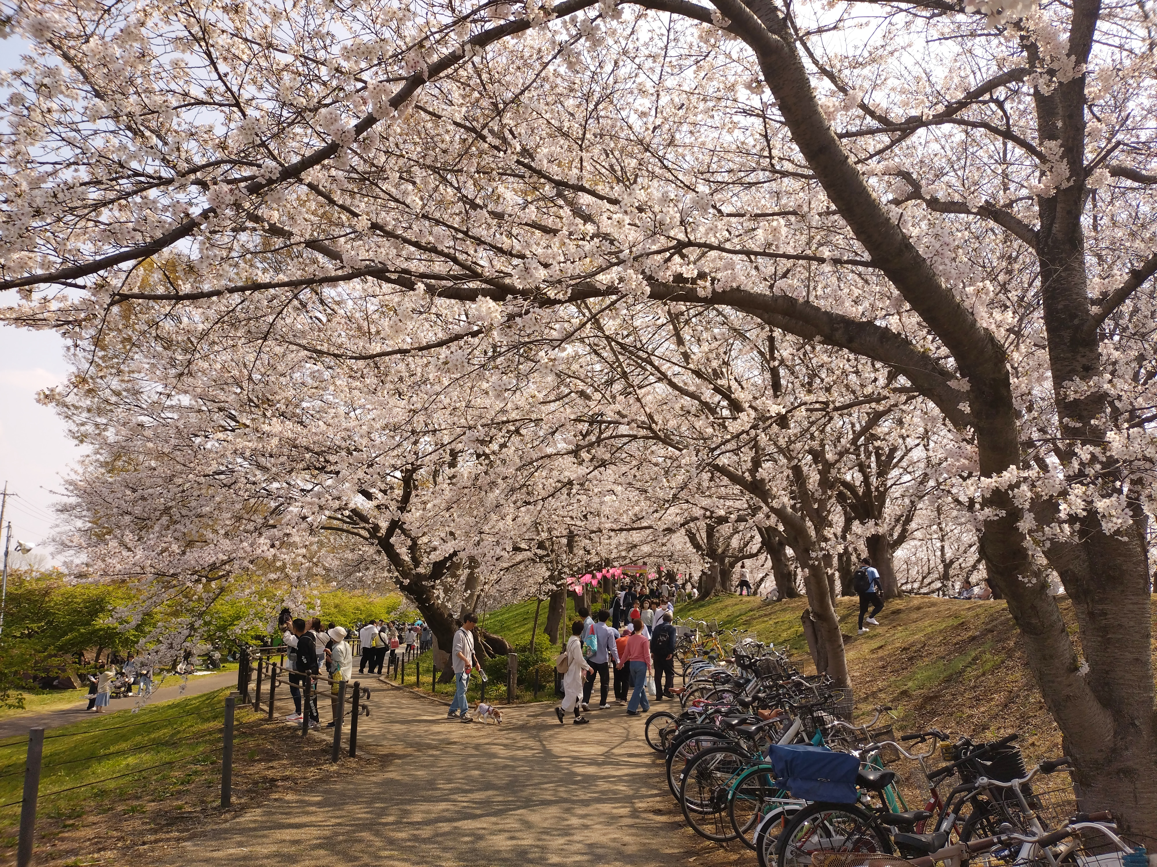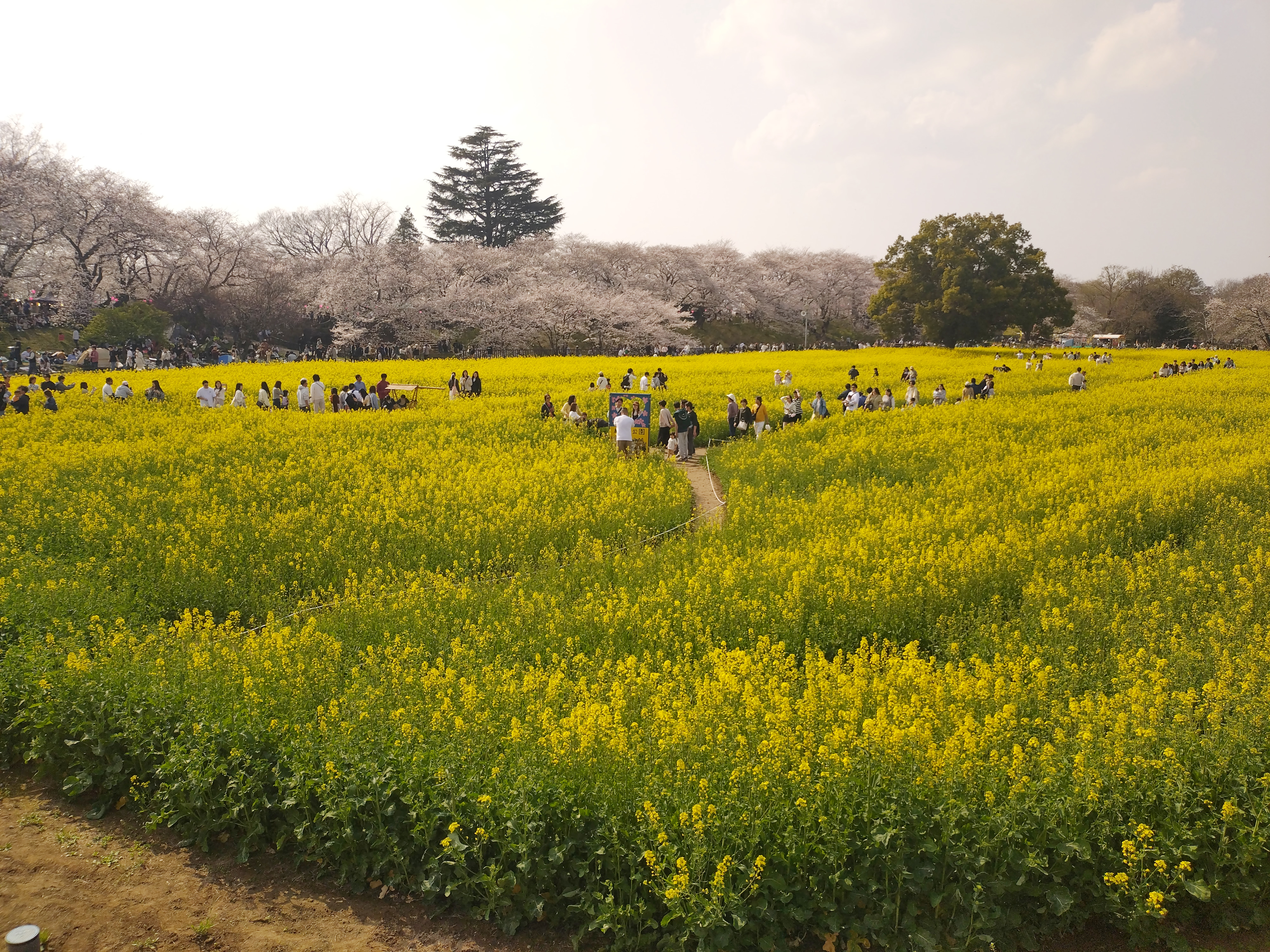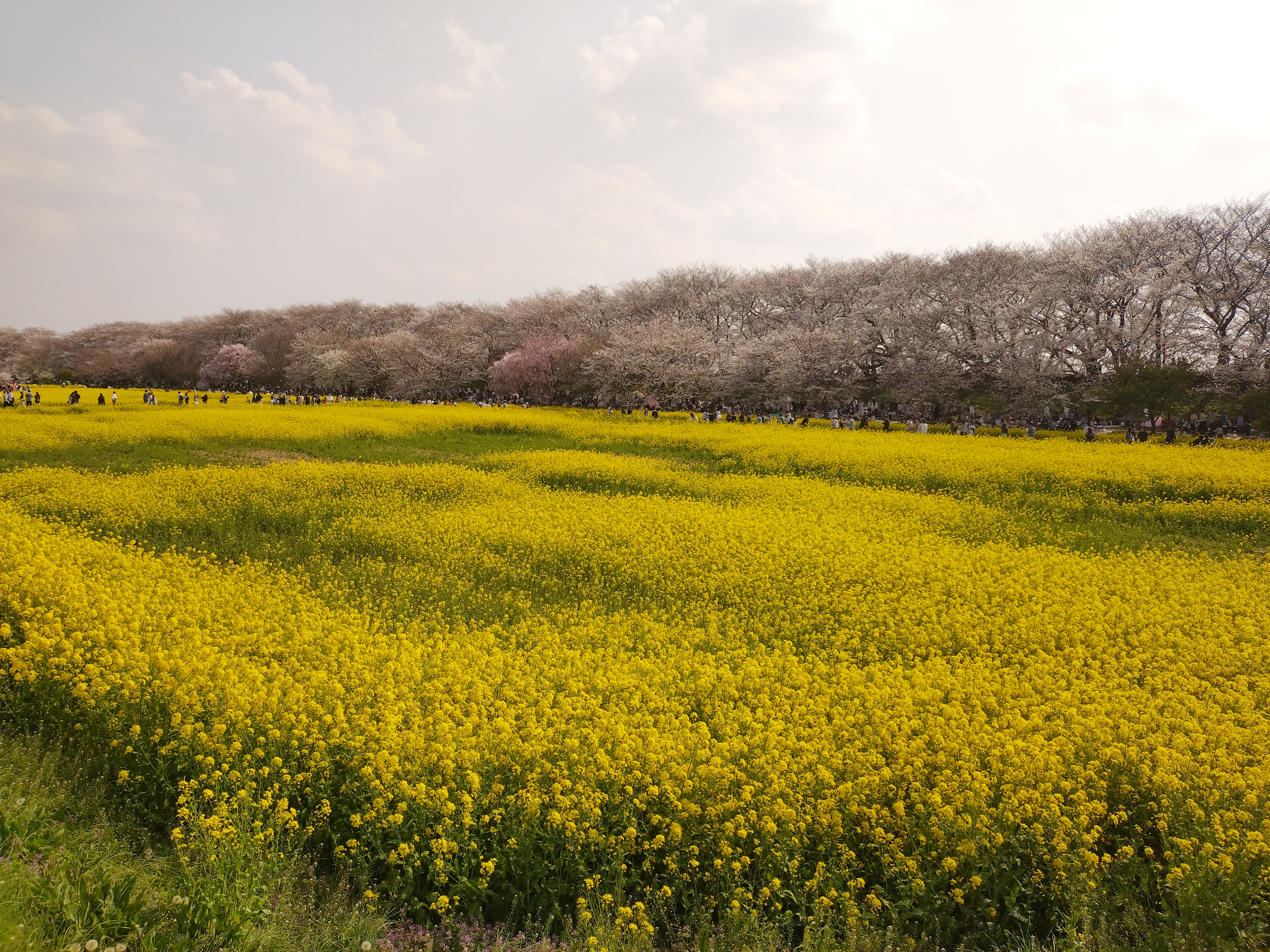 | 菜の花の反対側の桜 | 桜が密集していて 人が少なく魅力的です。 |