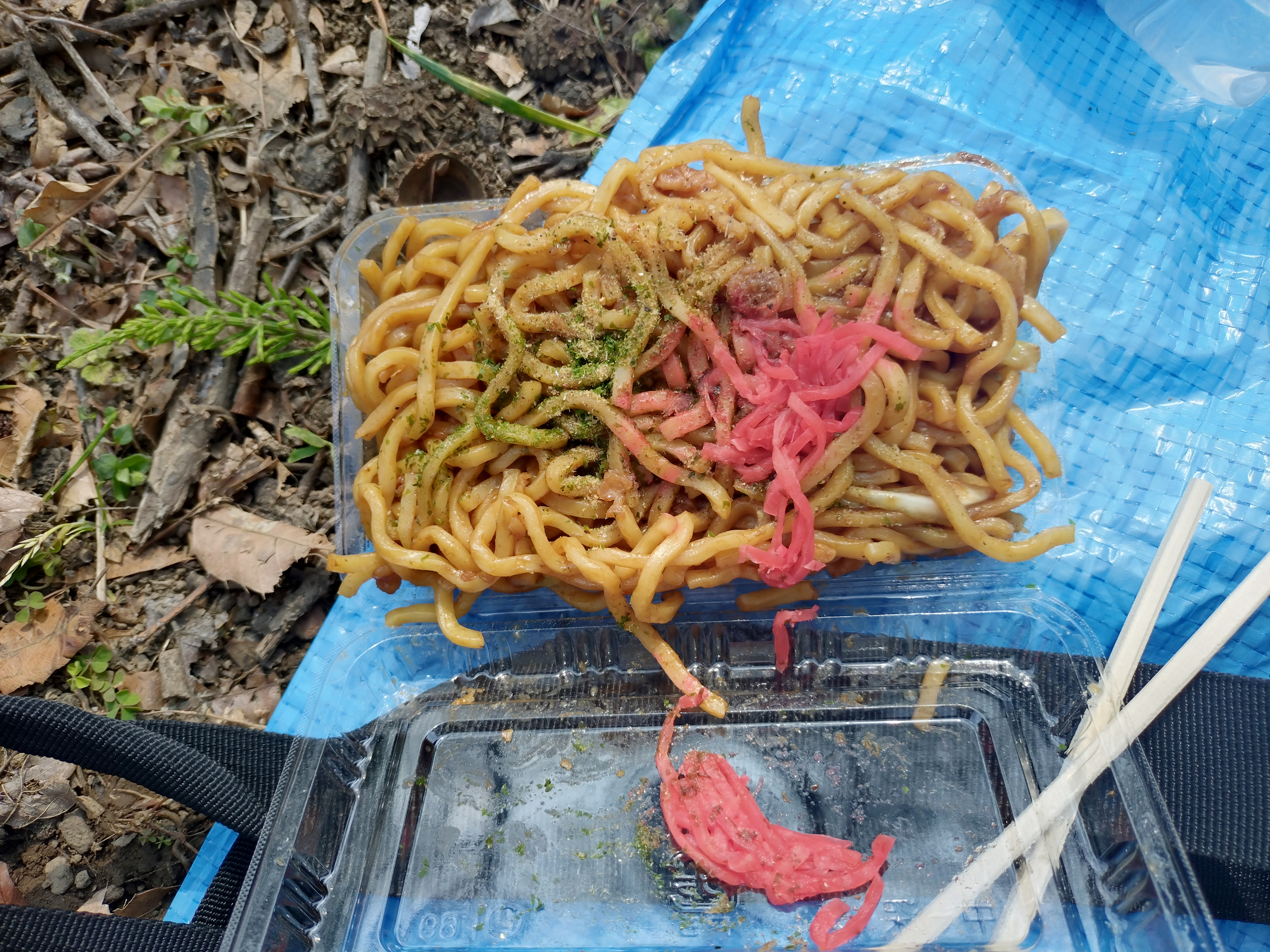 太くてコシのある麺はもちもち食感で食べごたえがあります。桜を眺めながら食べる焼きそばは、より楽しく感じられます