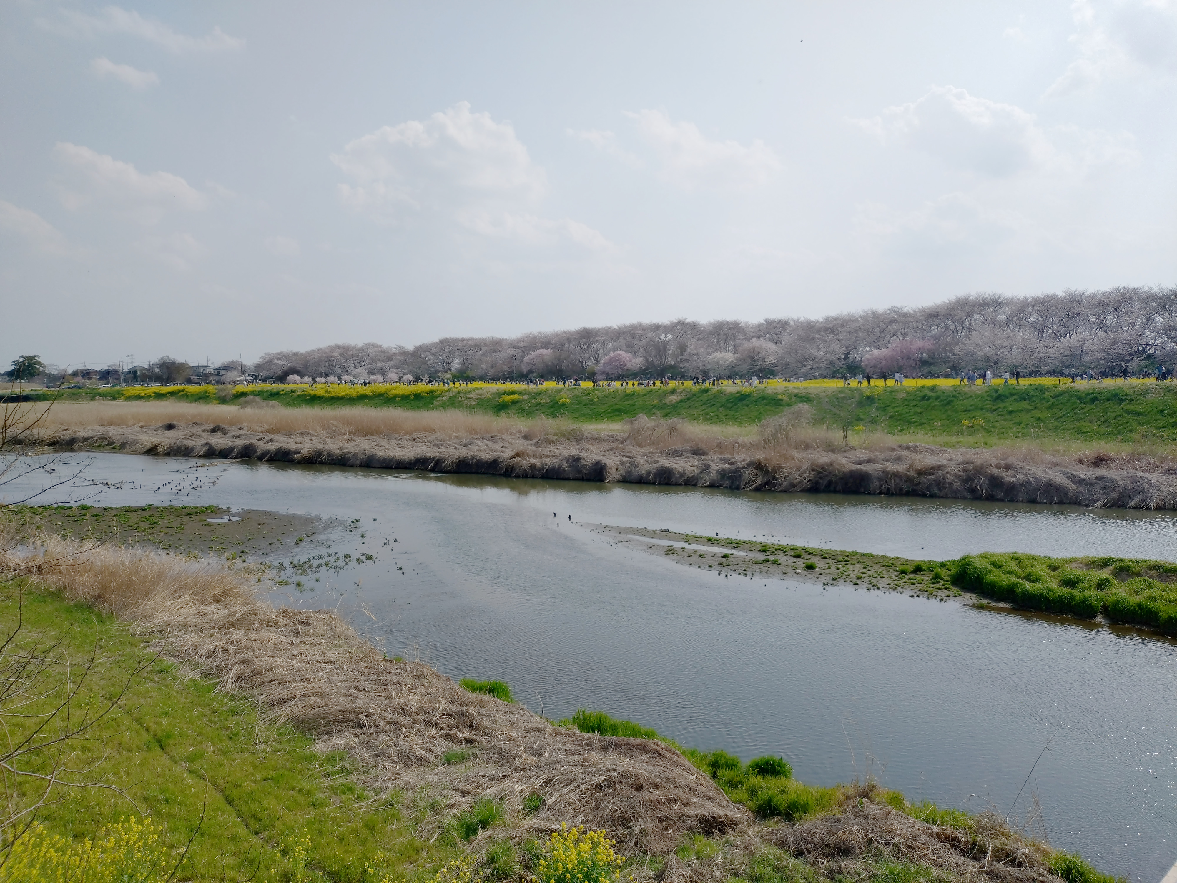 | 菜の花越しの桜堤 | 定番スポットですが。 景色は綺麗です。 |