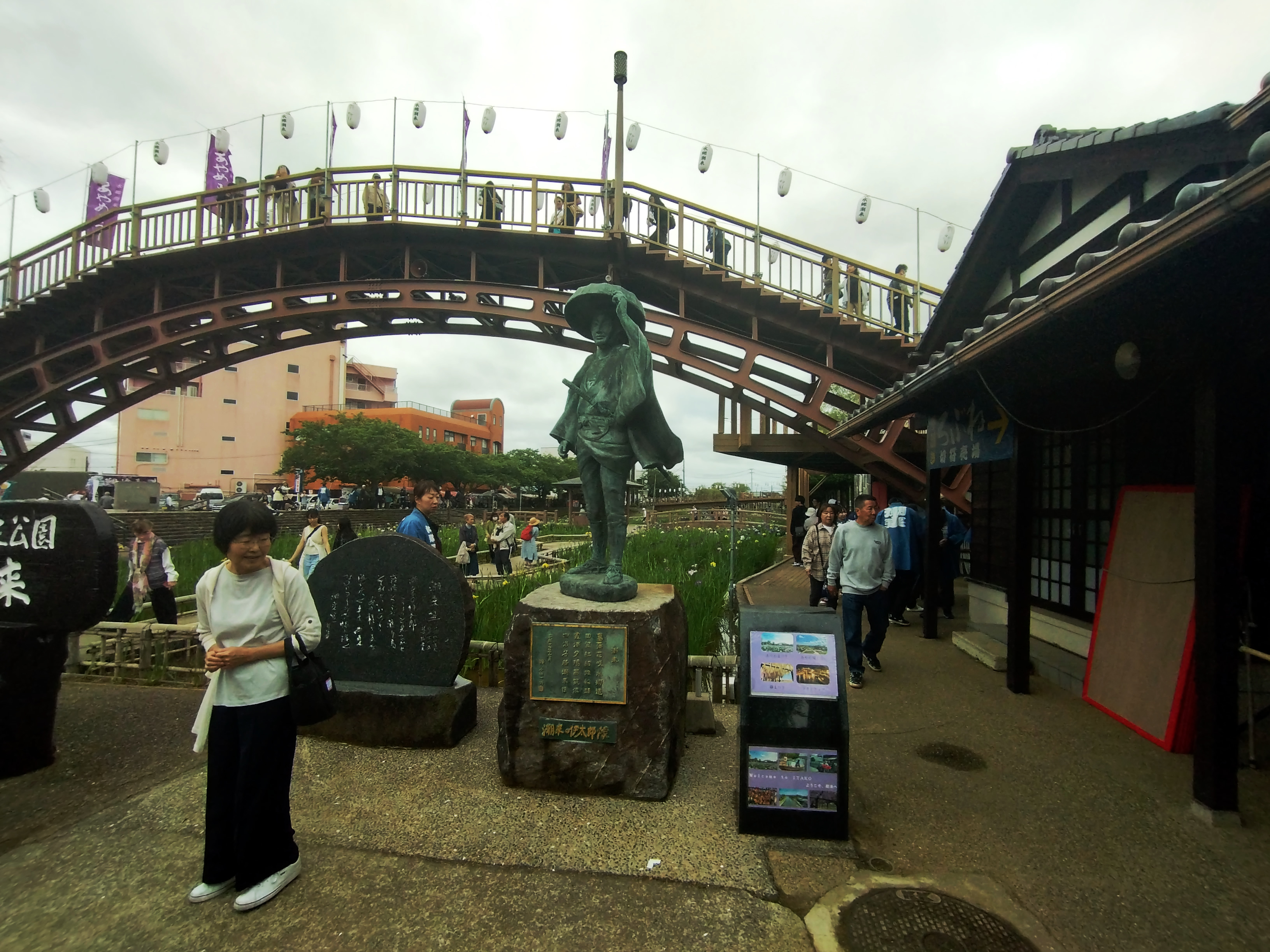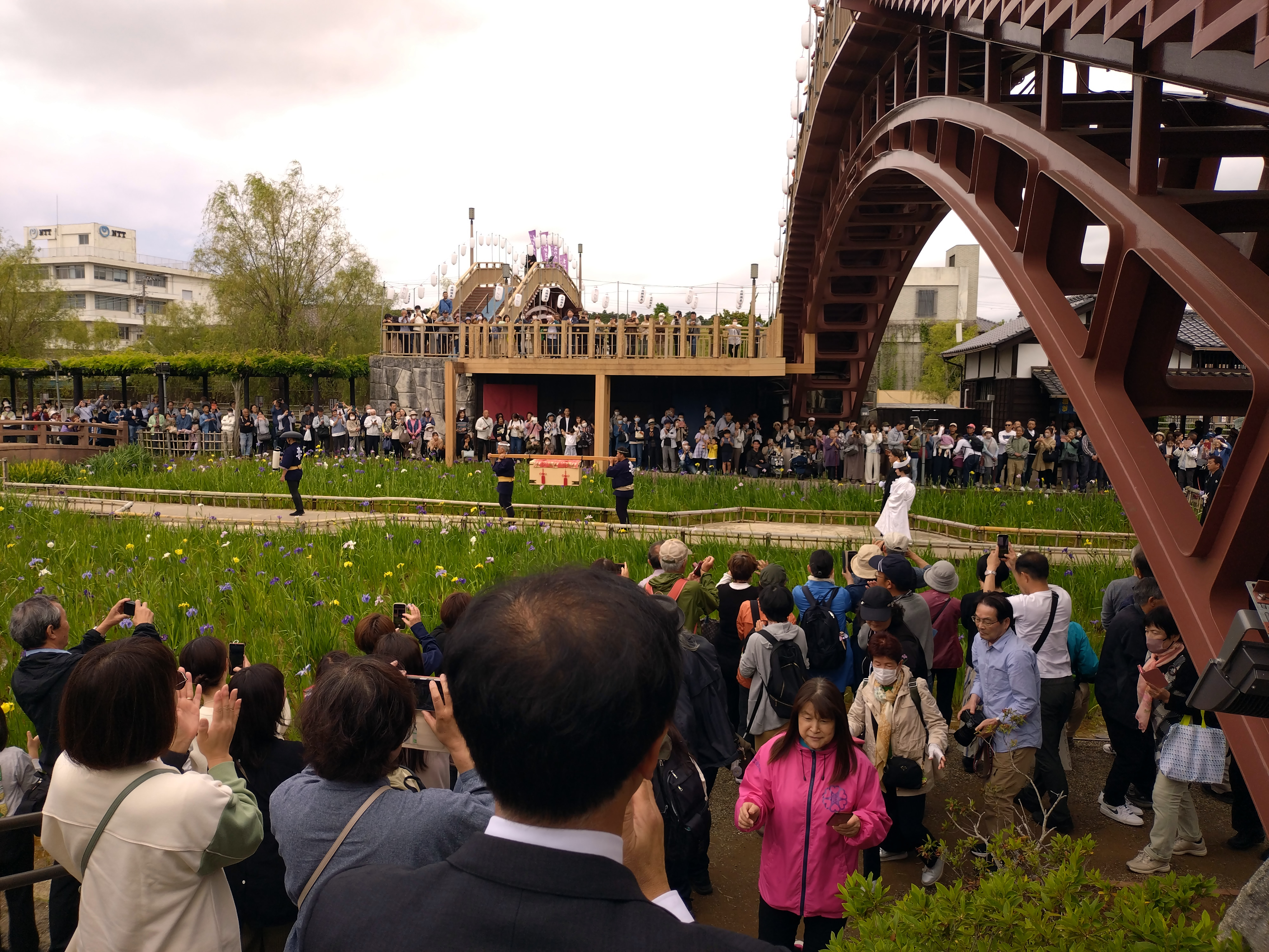 嫁入り船が終わると水郷潮来あやめ園を花婿と花嫁があやめ園を練り歩きます。皆さんに祝福されます。芸能人になった気分が味わえるでしょう。