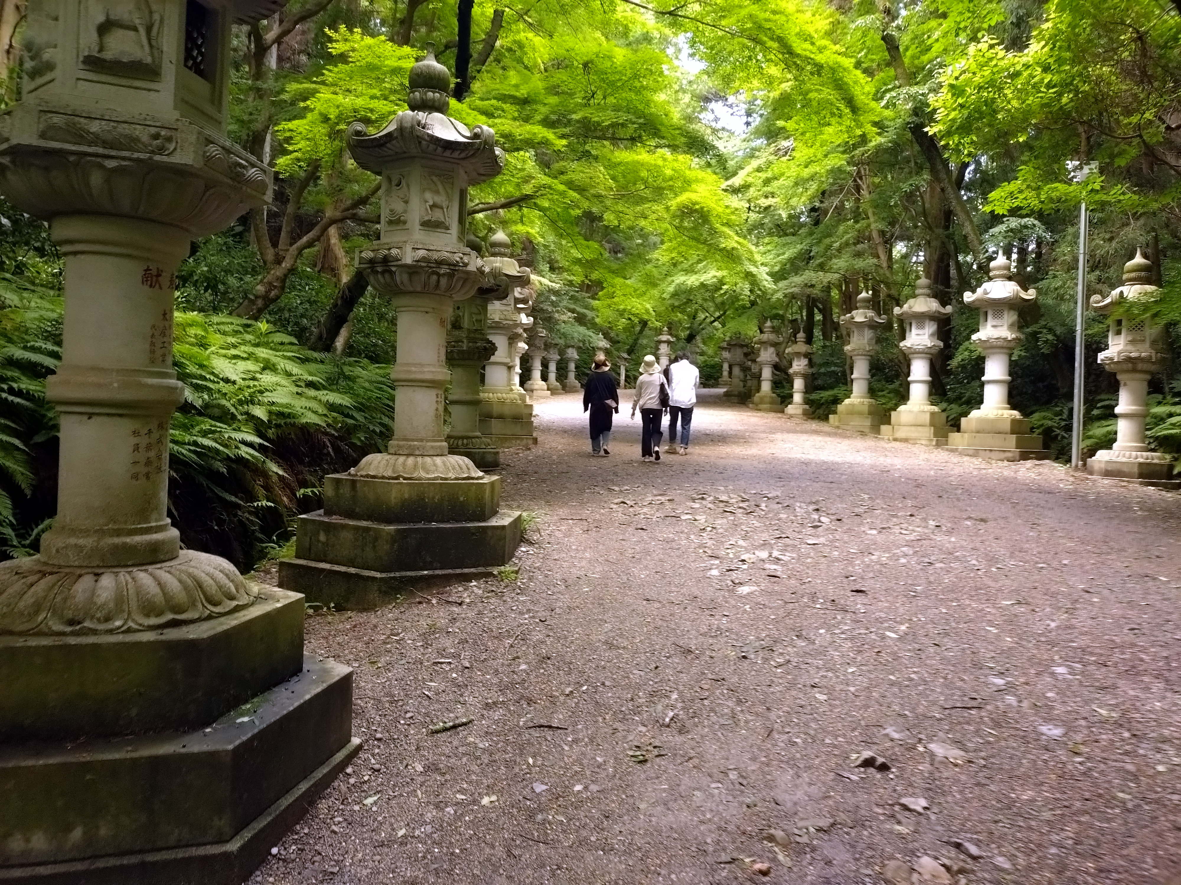 緑の木々×歴史的な石灯籠という景観の中、心身を清めて歩む神聖な参拝路です