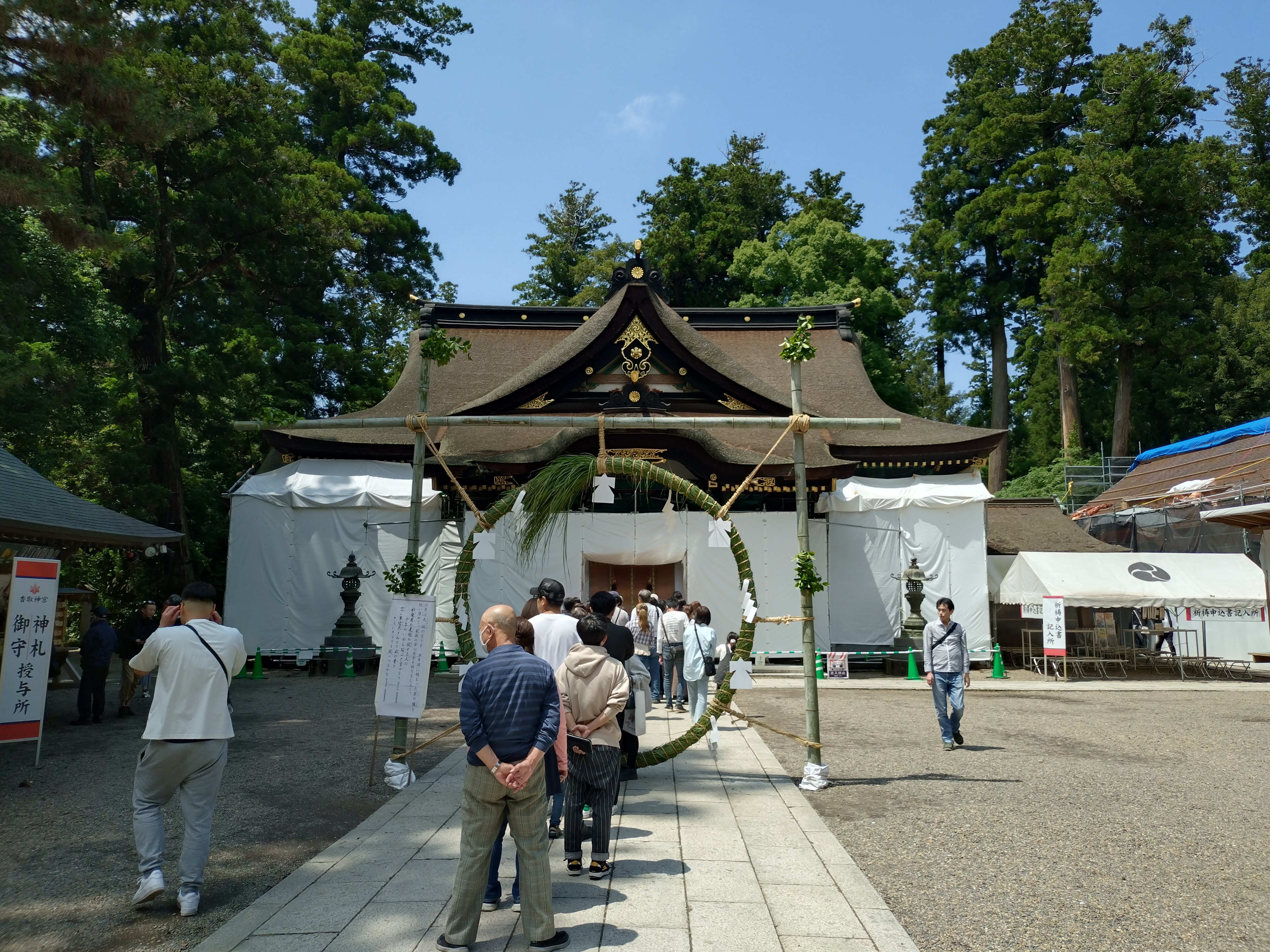 香取神宮本堂は、残念ながら拝殿塗り直し工事で全体像を見る事ができませんでした。出来上がったら黒い拝殿を見に来たいですね。