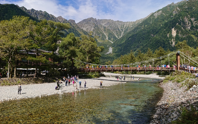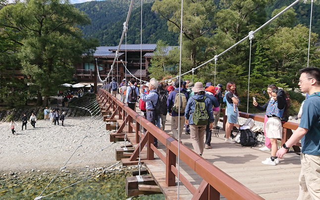 人気の河童橋 外国人も多く訪れている 交通の便も良くなくここまでの観光客が来るのはすごいですね。
