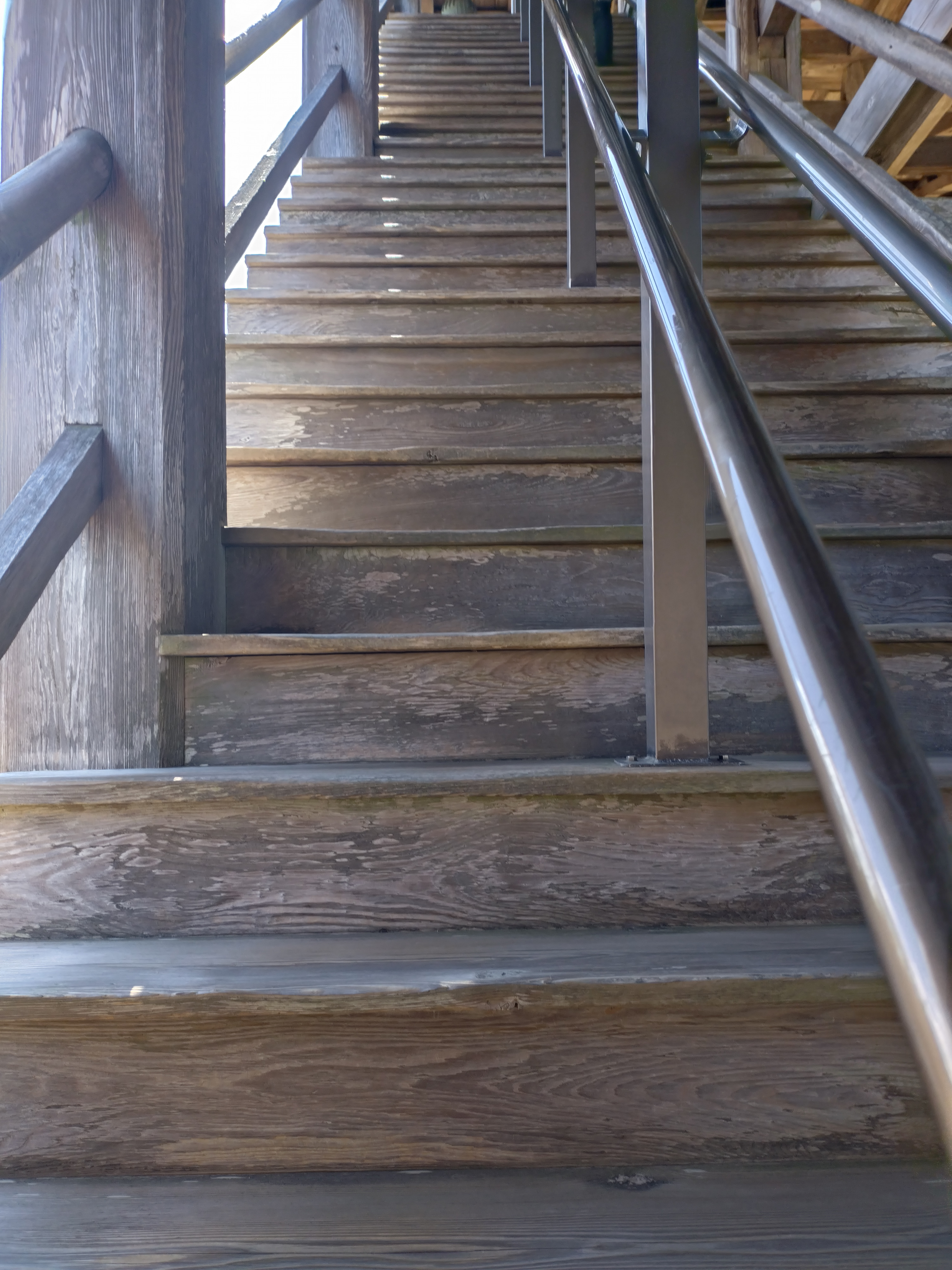 手摺を使わないと登れない階段です。無理をせずに慎重に上りましょう