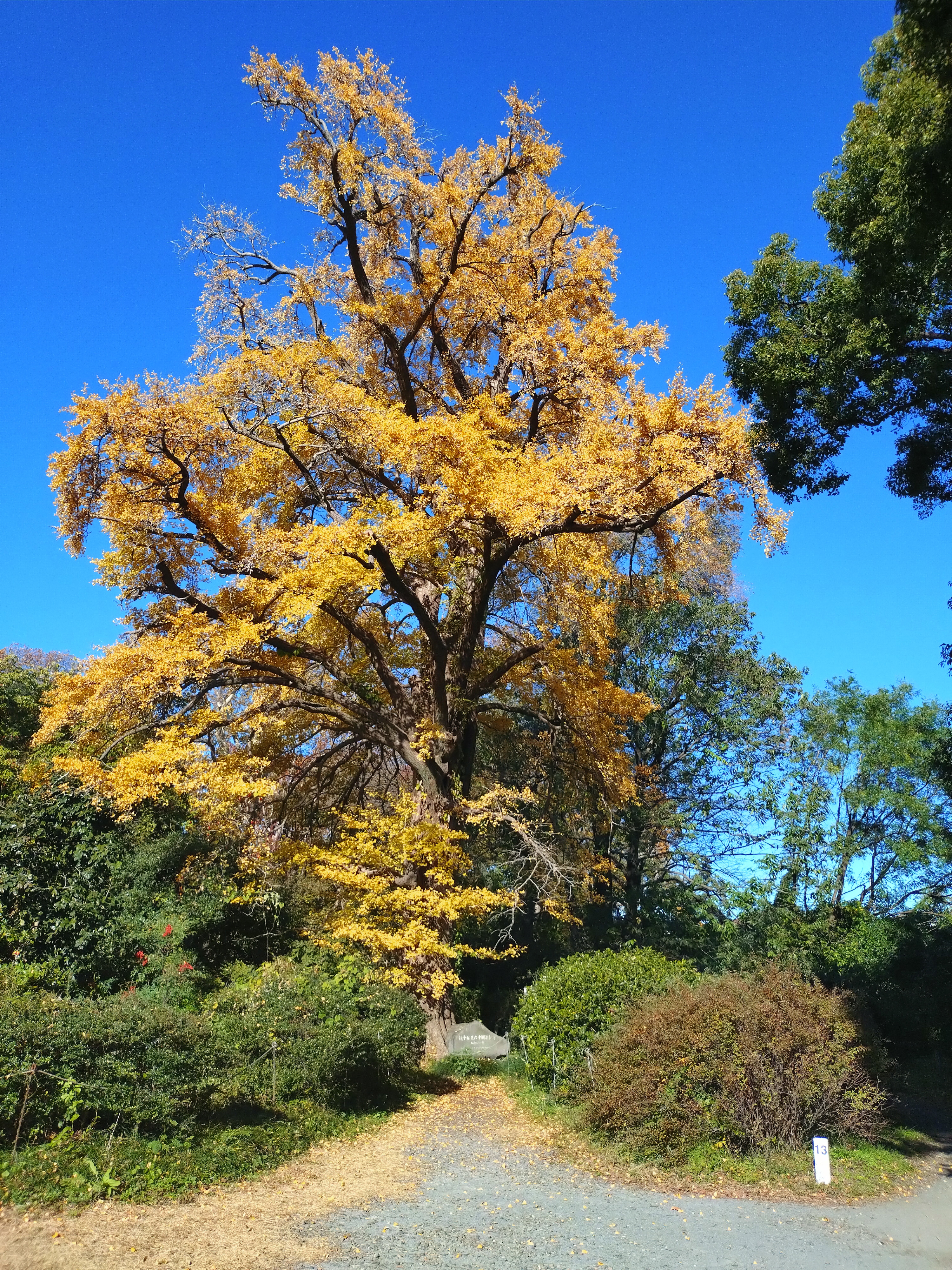 銀杏がたくさん落ちていて臭かったです。 背が高く立派なイチョウです。