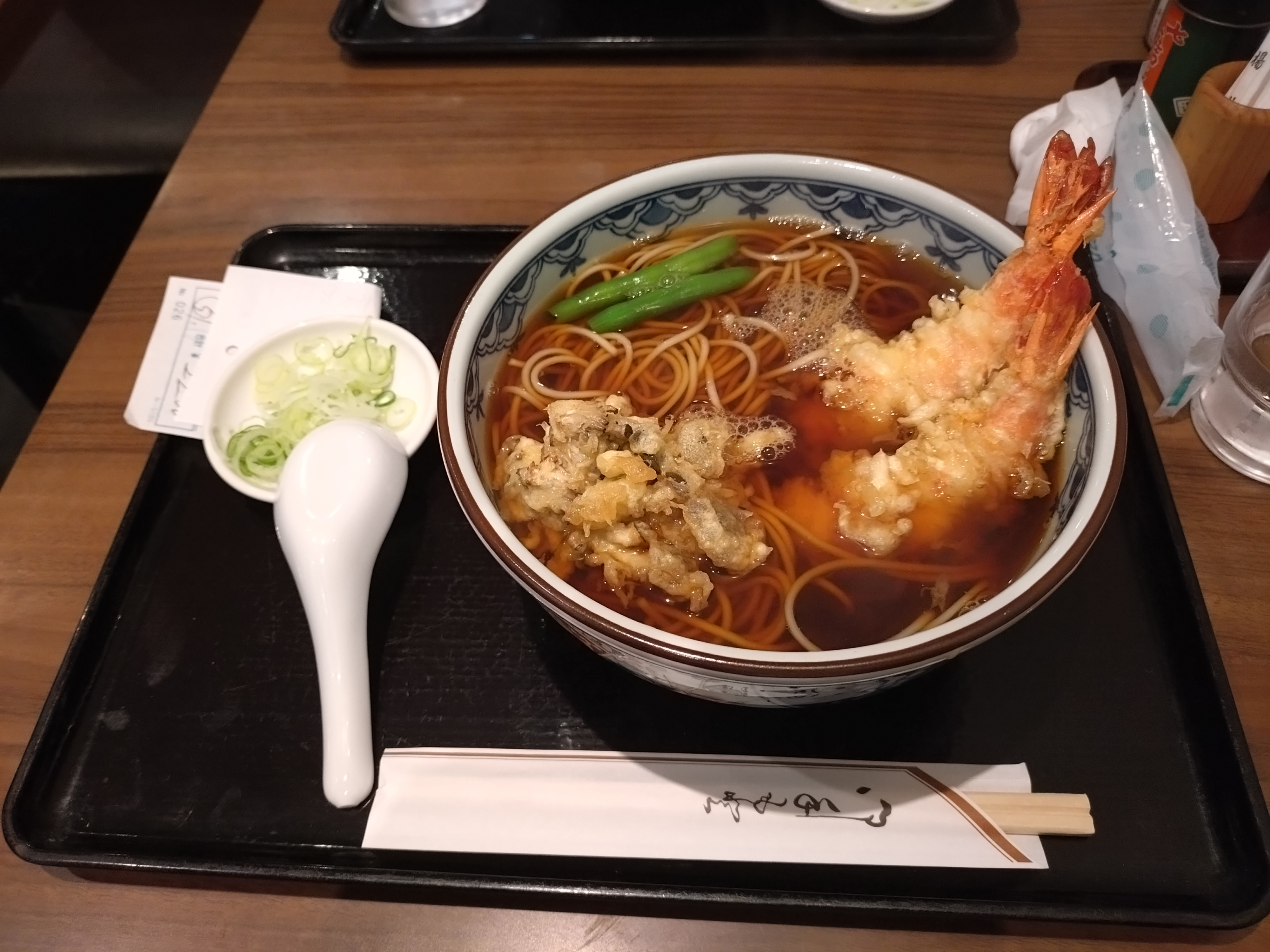 商店街にある松月庵でお昼のおそばを食べる事に1,250円 上てんぷらをたのみました マイタケのてんぷらと大きなエビのてんぷら おそばやさんなのでおそばがおいしい エビてんぷら大きくぷりぷりです。 巣鴨でランチに迷ったら松月庵でおそばはいかがでしょうか
