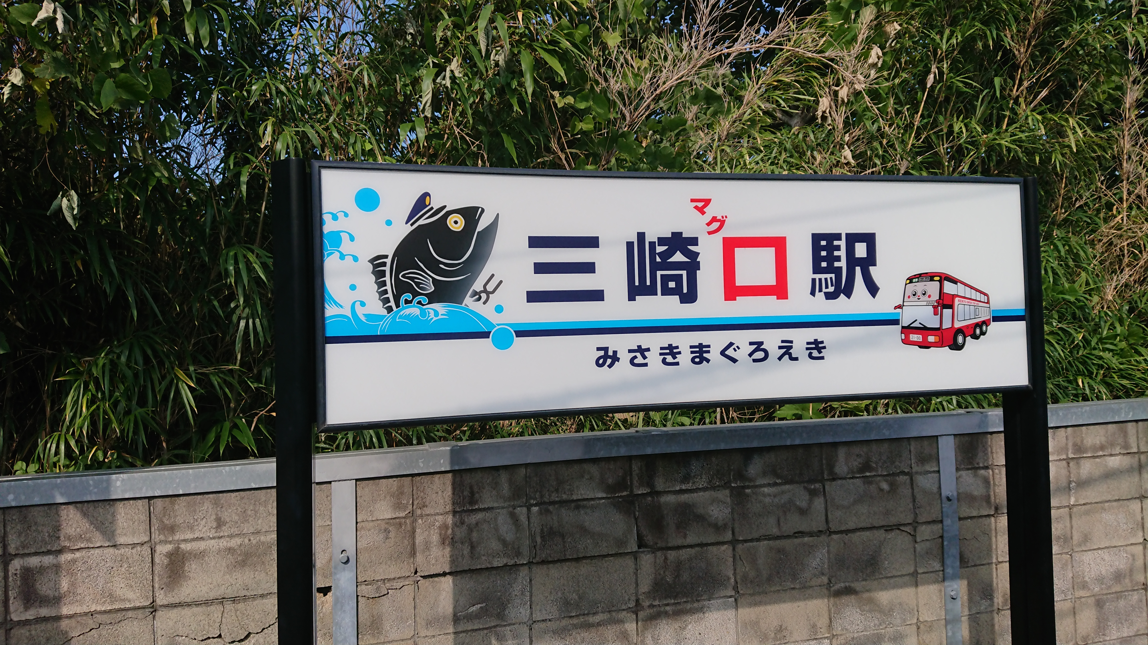 終点の三崎駅に着くと駅名がみさきまぐろ駅になっている。 マグロが有名なのがわかる。