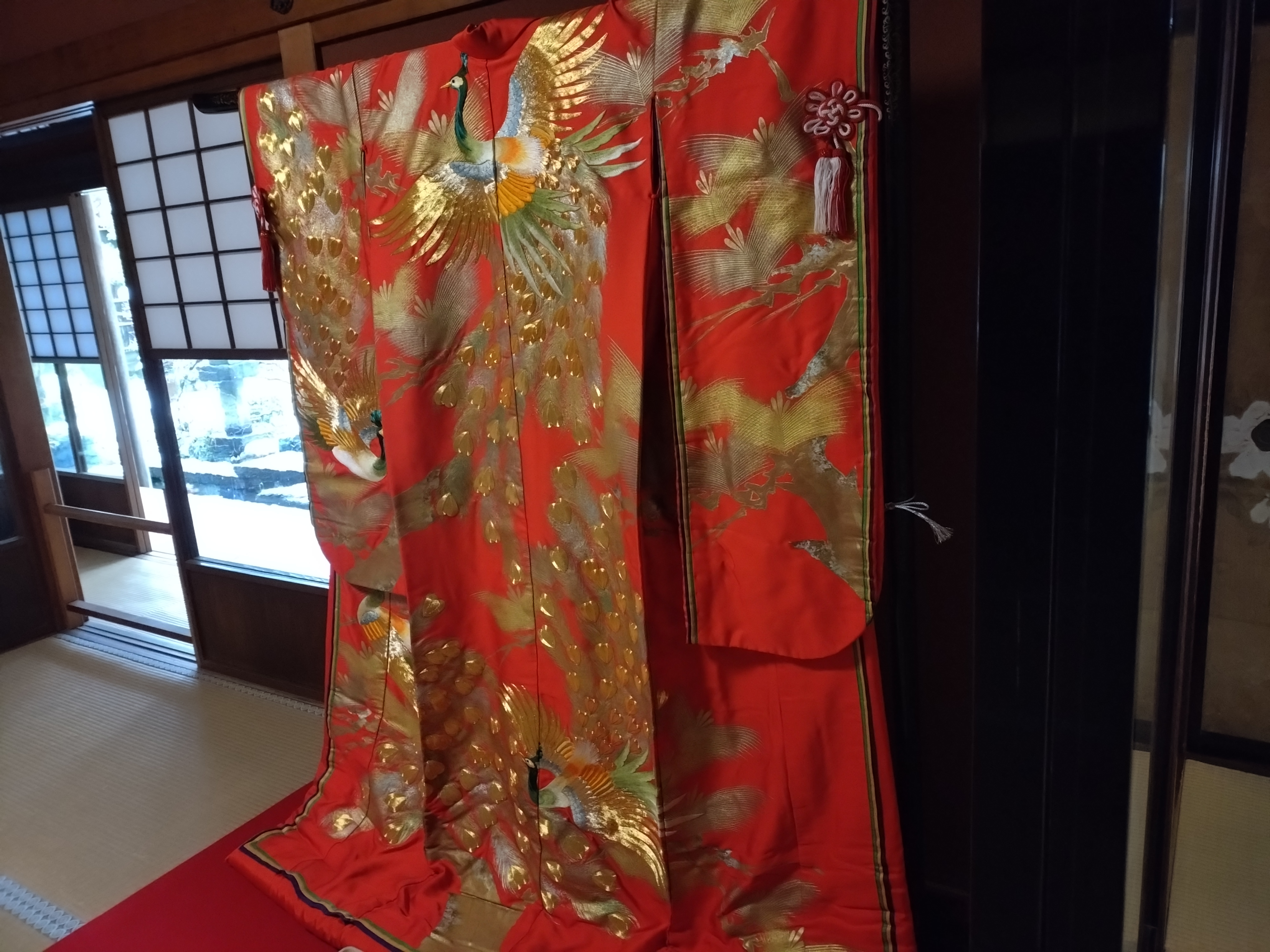 金色と赤の豪華な着物。