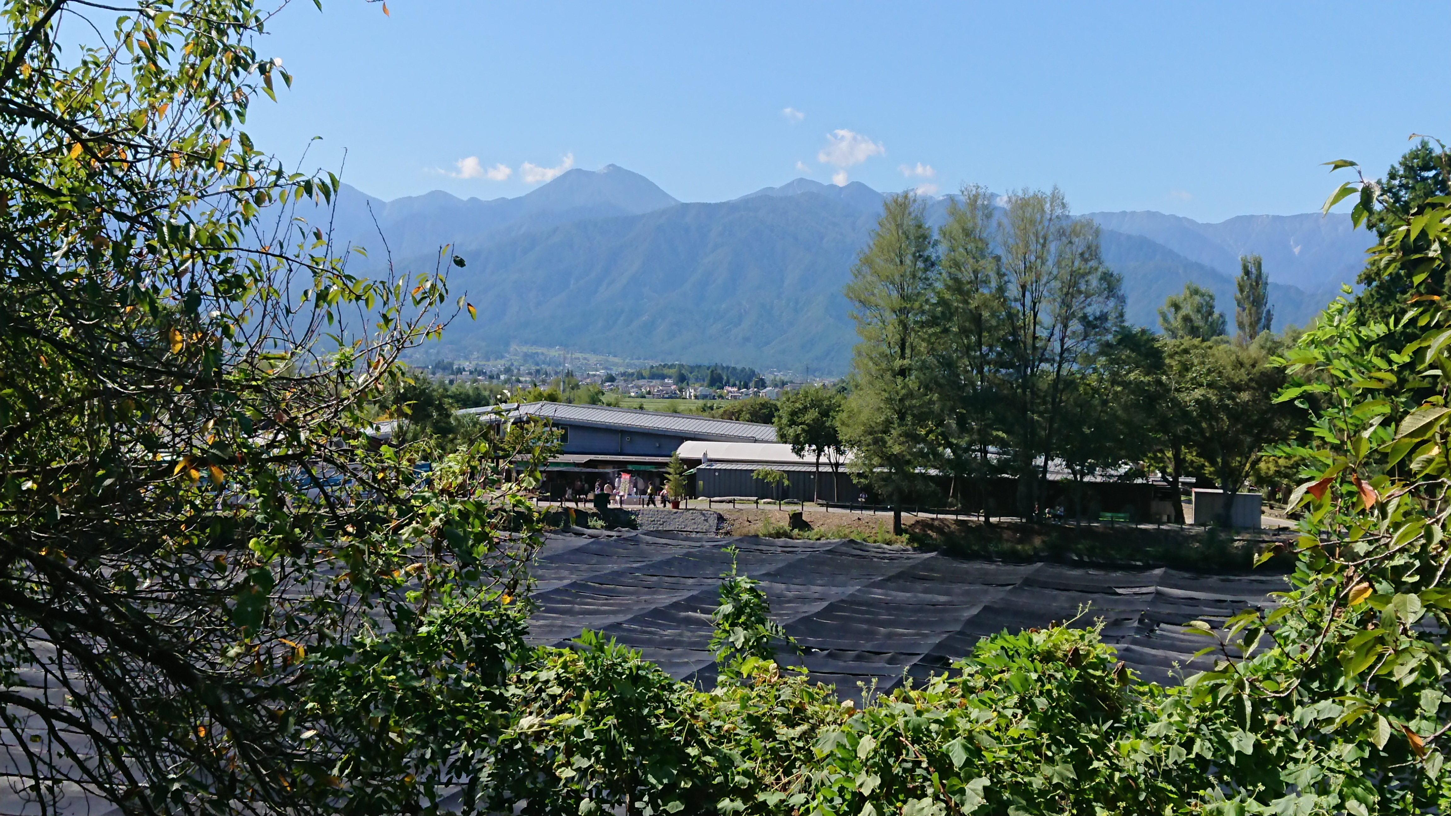 「大王わさび農場を見守る・太陽・を表現したい」というのが2代目、深澤勇市の念願でこの石組みの築山の上に置かれた大きな球状の荒彫り椅子(白御影石)がそれなのです。その完成の折に「八面大王の見張り台」と名付けたそうです。