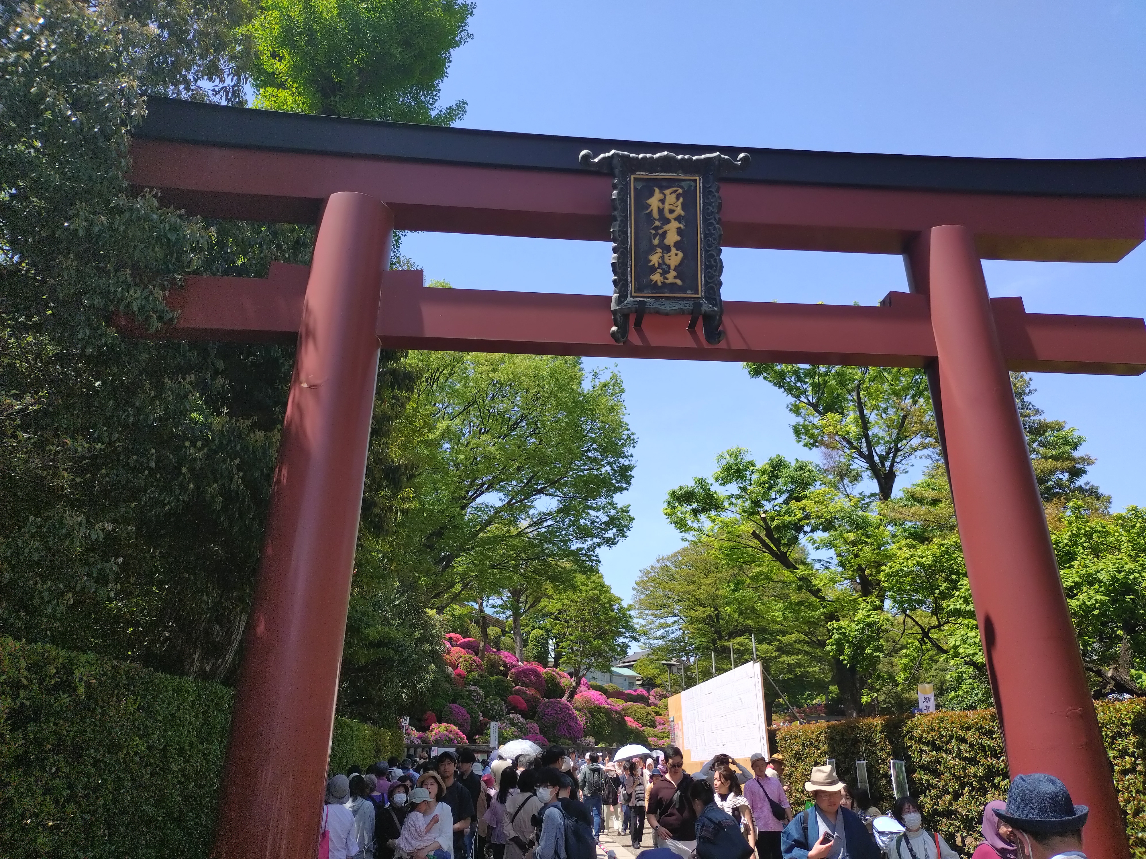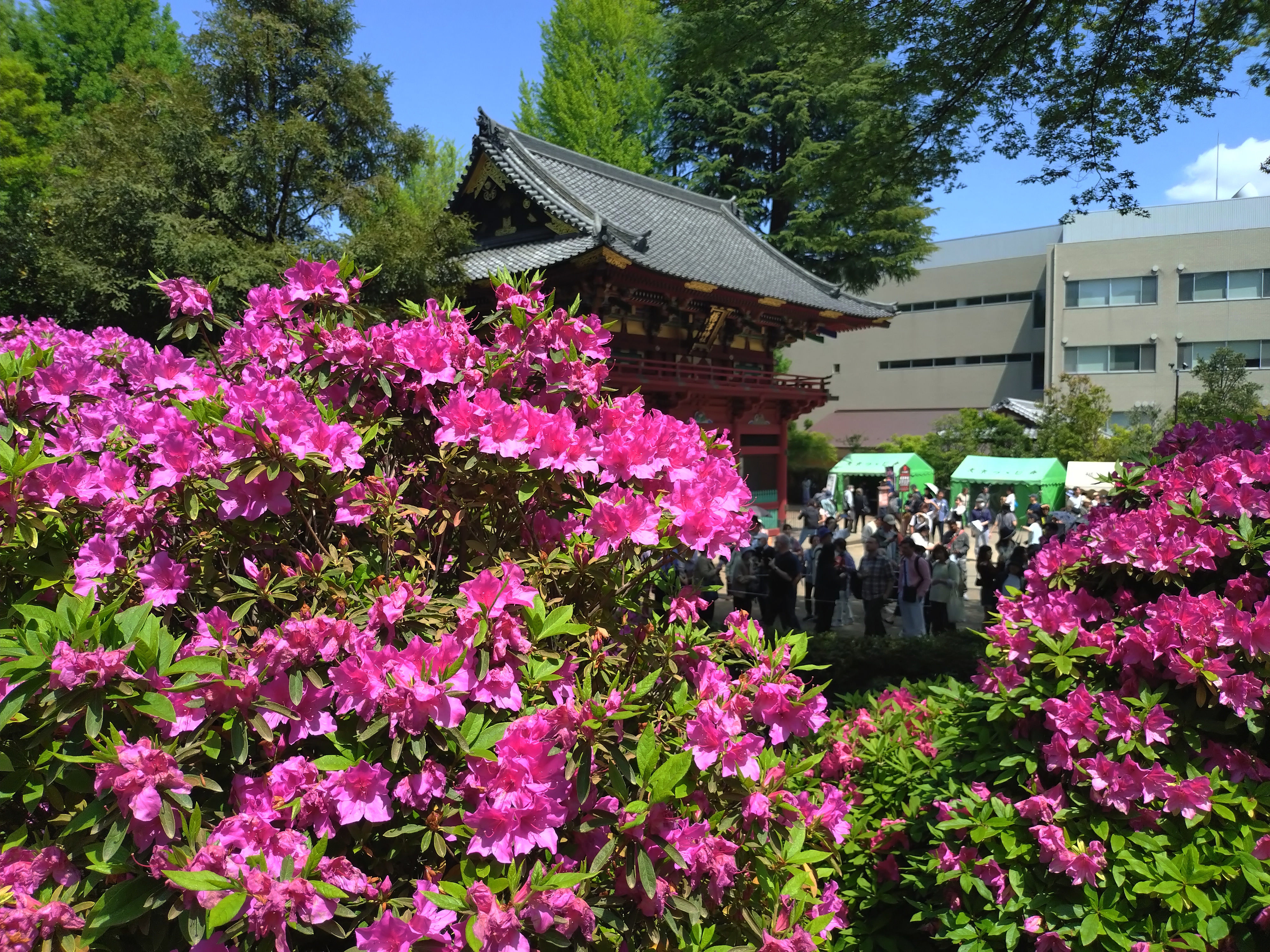 根津神社では、色鮮やかなつつじと風格ある楼門が美しく調和し、訪れる人を魅了します。春には満開のつつじが境内を華やかに彩り、歴史を感じる門とともに趣ある景色を楽しめます。
