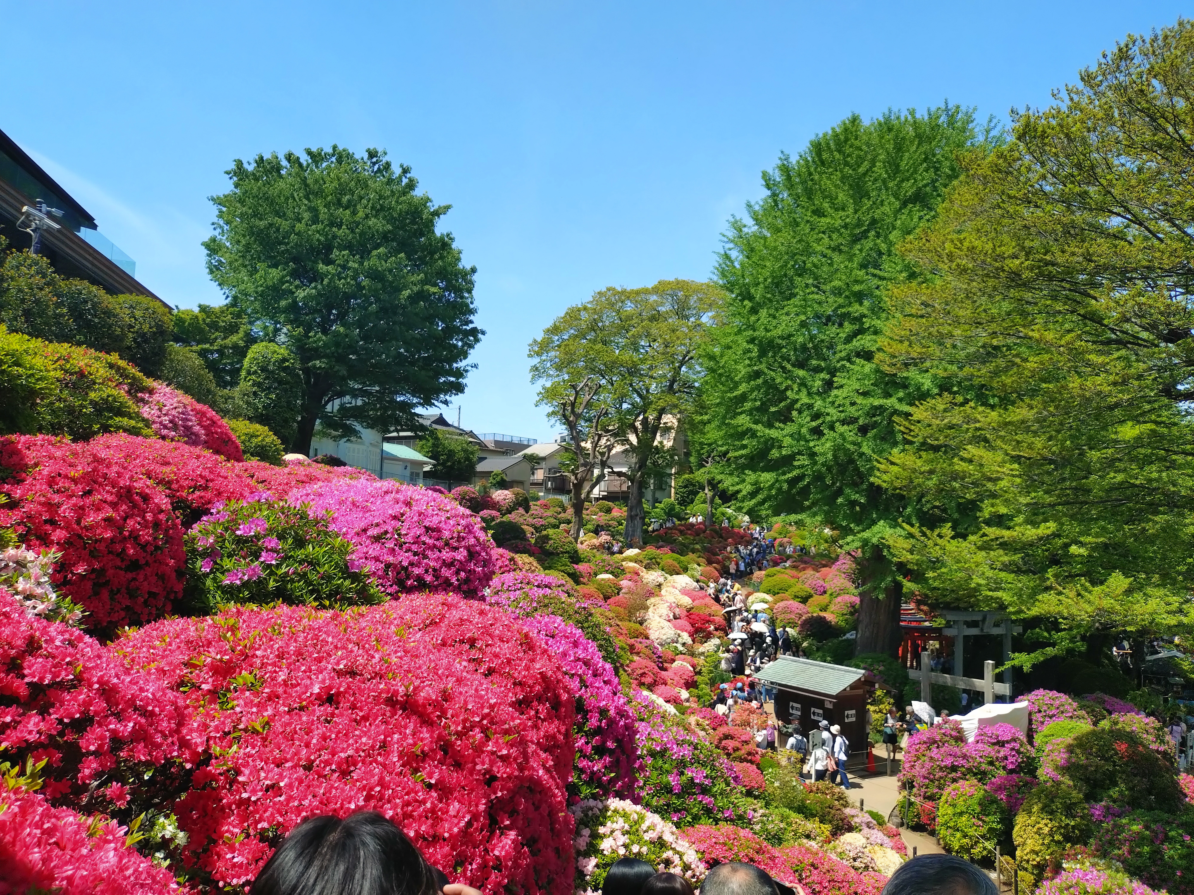 根津神社には久しぶりに訪れました。つつじ苑に入るためにかなりの列ができていて、どれくらい待つのか少し不安になりましたが、30分ほどで入ることができたので、そこまで疲れずに済みました。園内のつつじはとても華やかで、本当にきれいでした。色とりどりの花が咲き誇り、見ているだけで気分が明るくなります。人が多いため、きれいな写真を撮るのは少し難しかったですが、それだけ人気の高さを感じました。実際に訪れてみて、多くの人が集まる理由がよくわかる素敵な場所でした。
