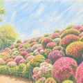 傾斜一面にたくさんの花が咲き広がり、とても見事な景色になります。赤やピンク、白、紫など色とりどりのつつじが斜面を埋め尽くし、まるで花のじゅうたんのようです。