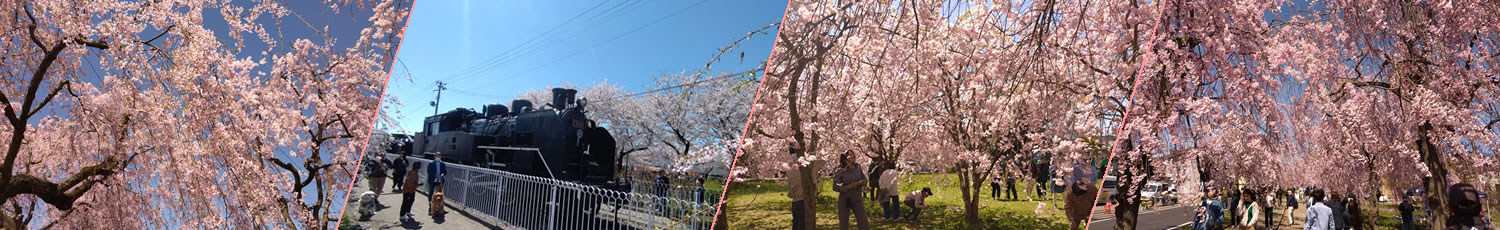 | 魅力 | さくらとSLが一緒に撮れるスポット。 他にはない場所。。 | ポスターでも使われている。しだれざくらのトンネルが魅力。 |
