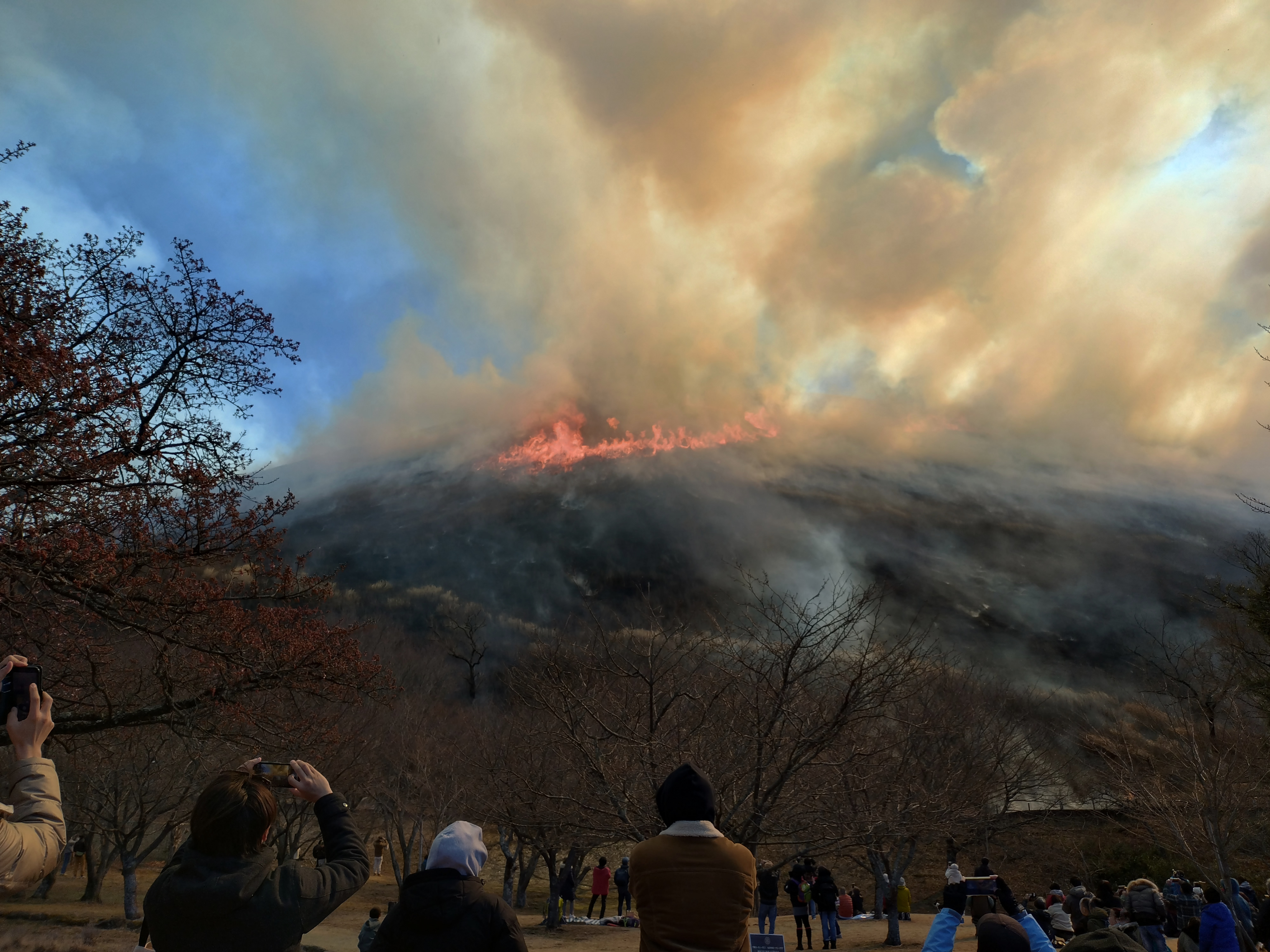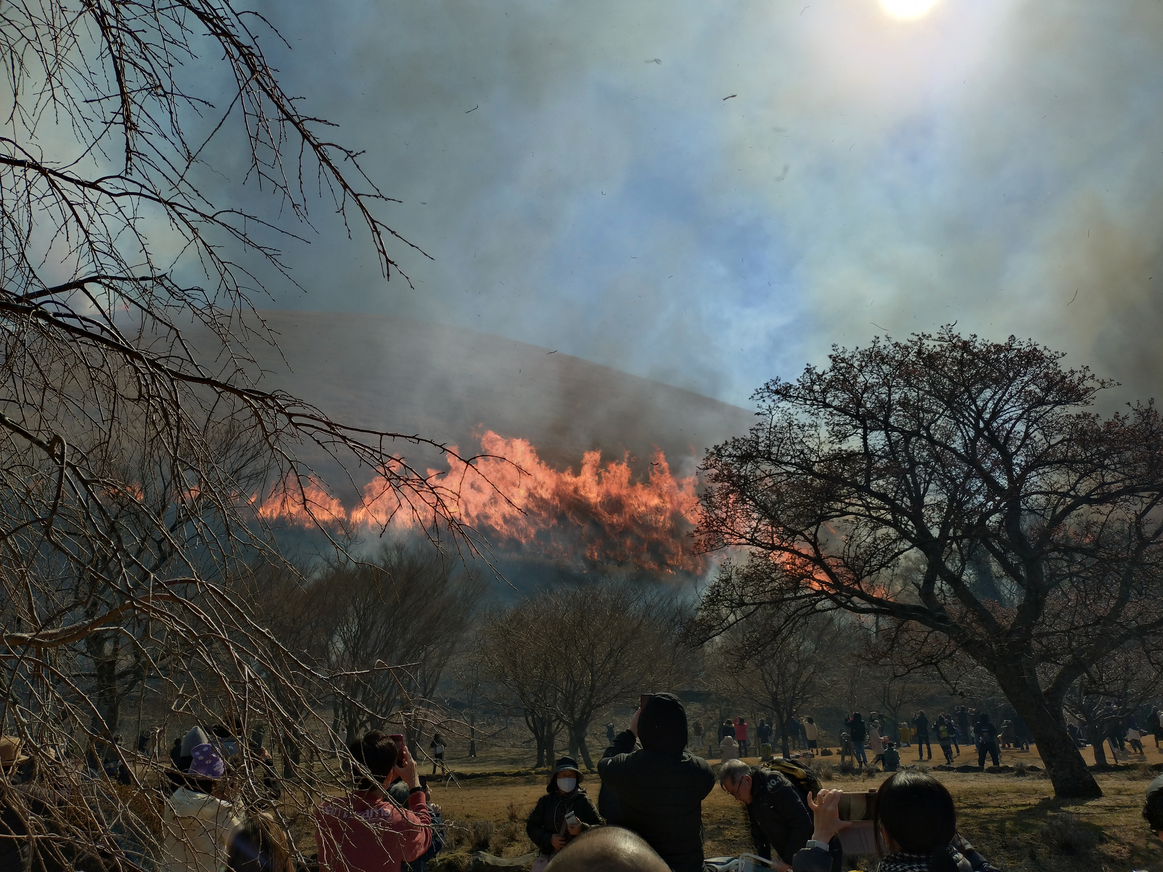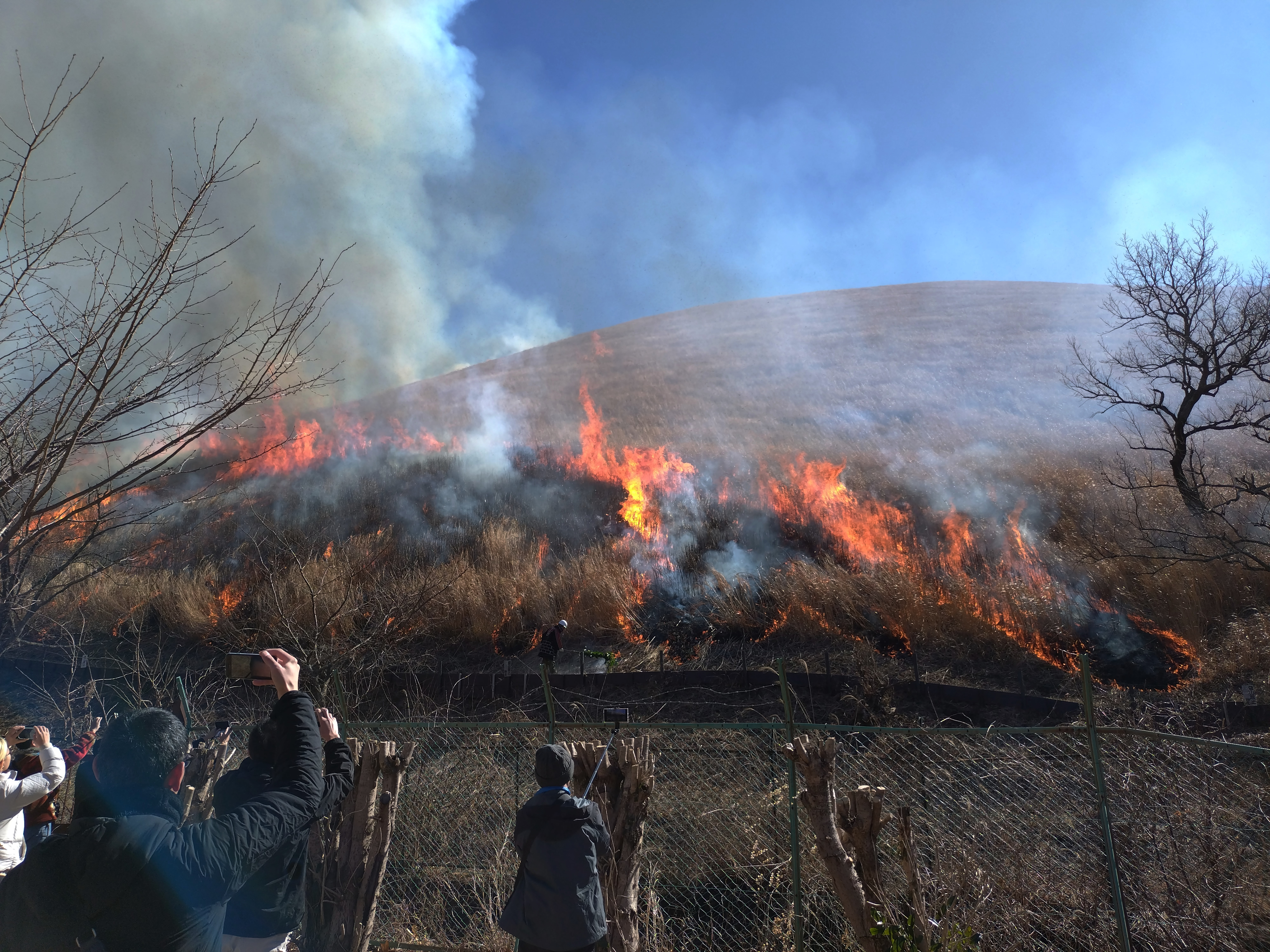 山頂付近は風が強く煙が出ています。あっというまに山焼きが終わりました。