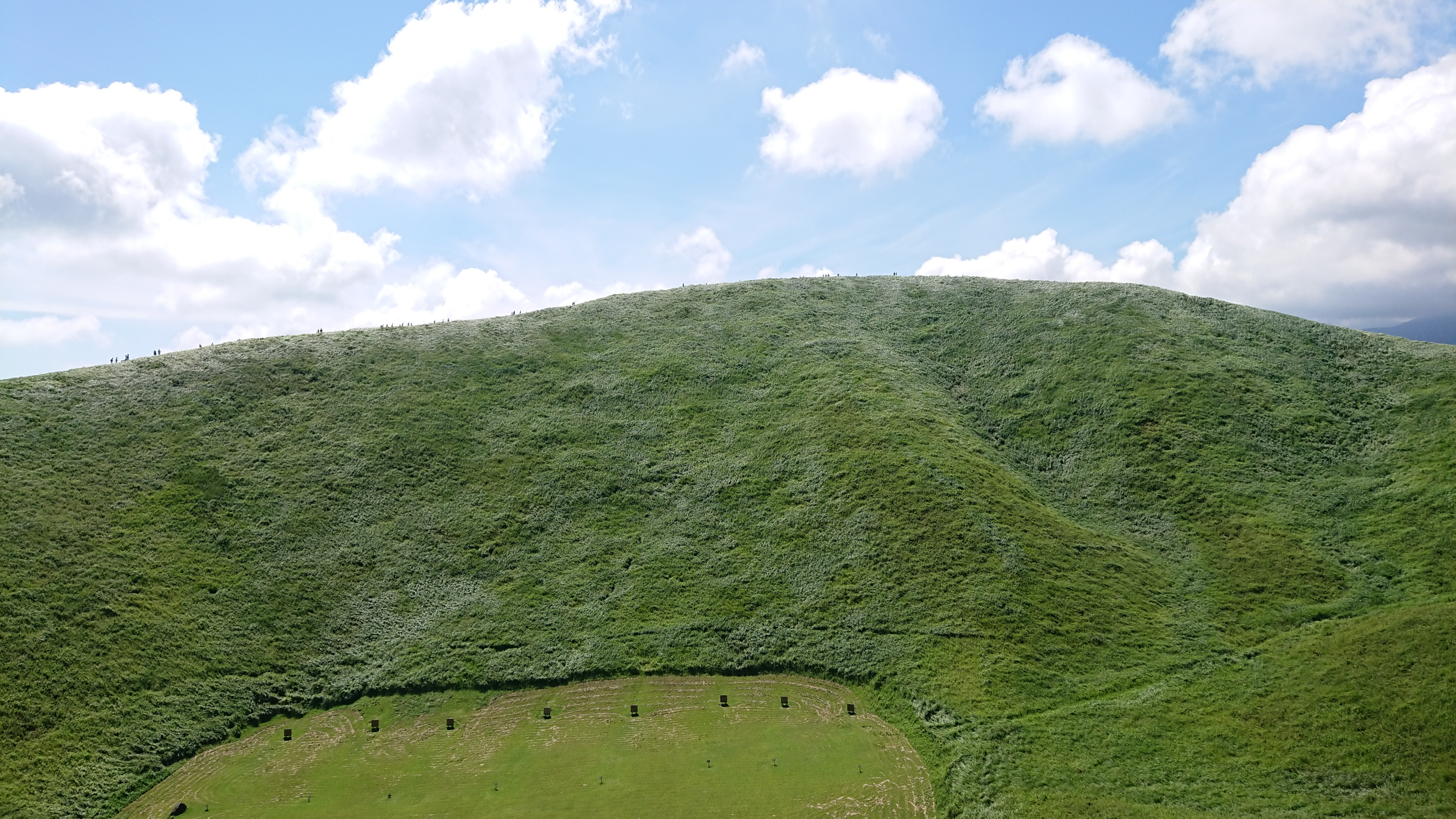 頂上に着くと迫力が違います。 写真ではわからない景色がひろがります。 緑の草が綺麗な景色を醸し出しています。