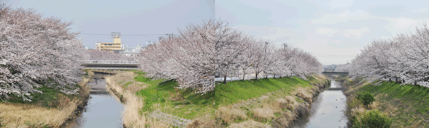 橋から矢那川は、川を見渡せさくらがきれいに見え撮影スポットになるでしょう