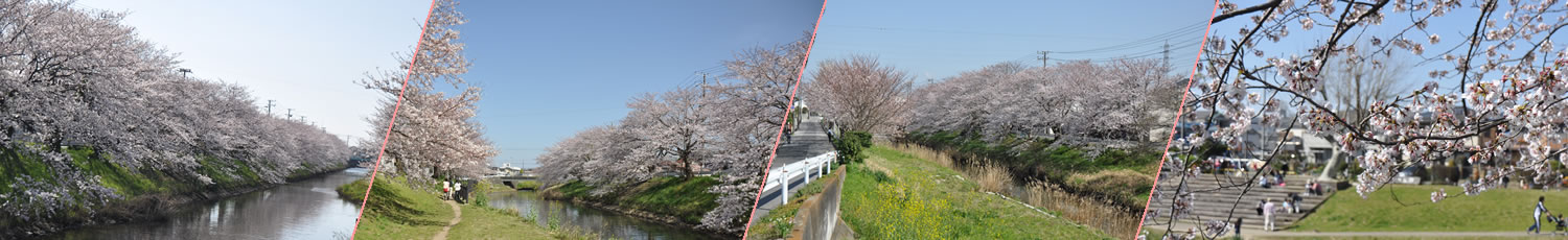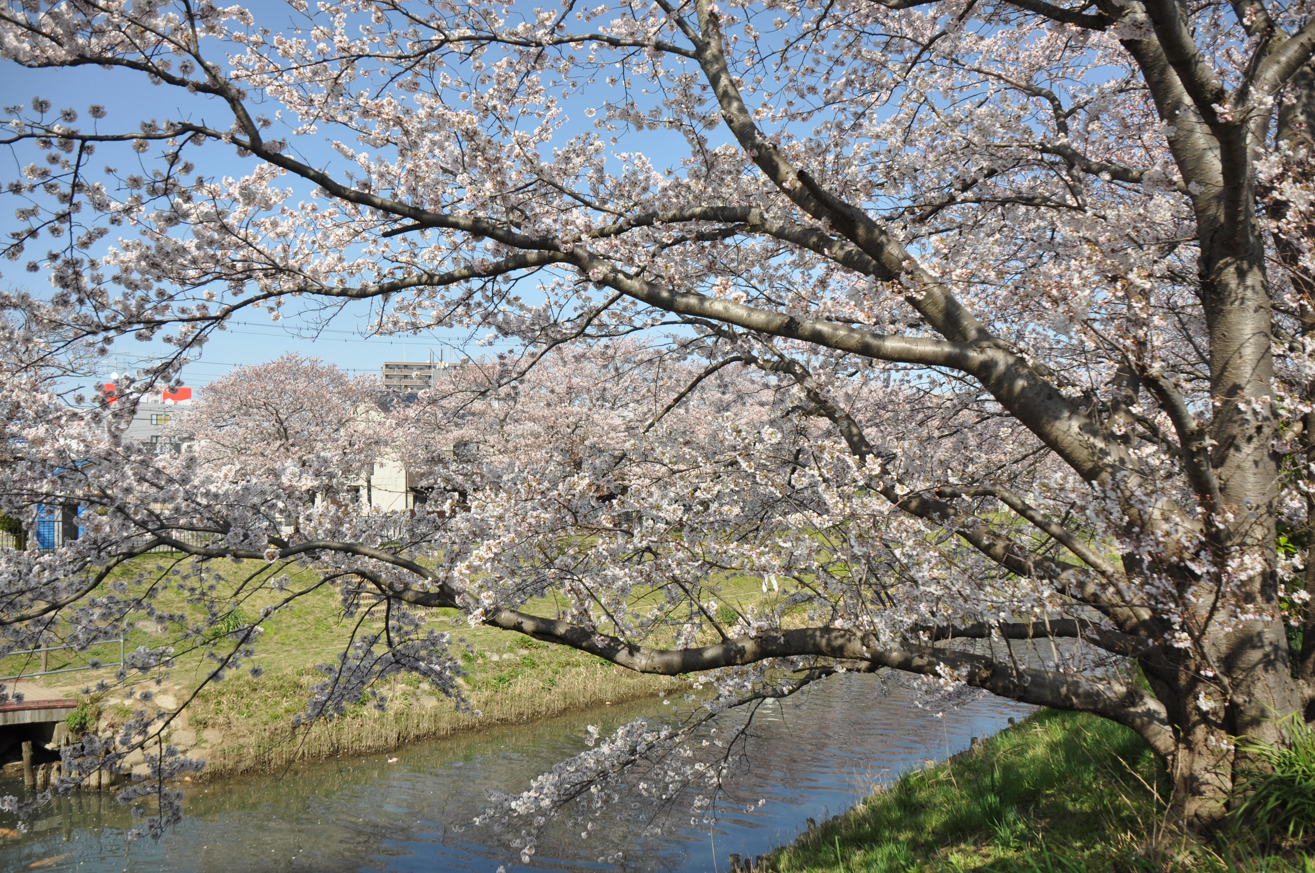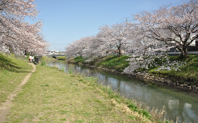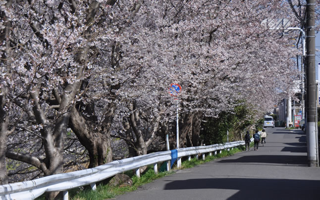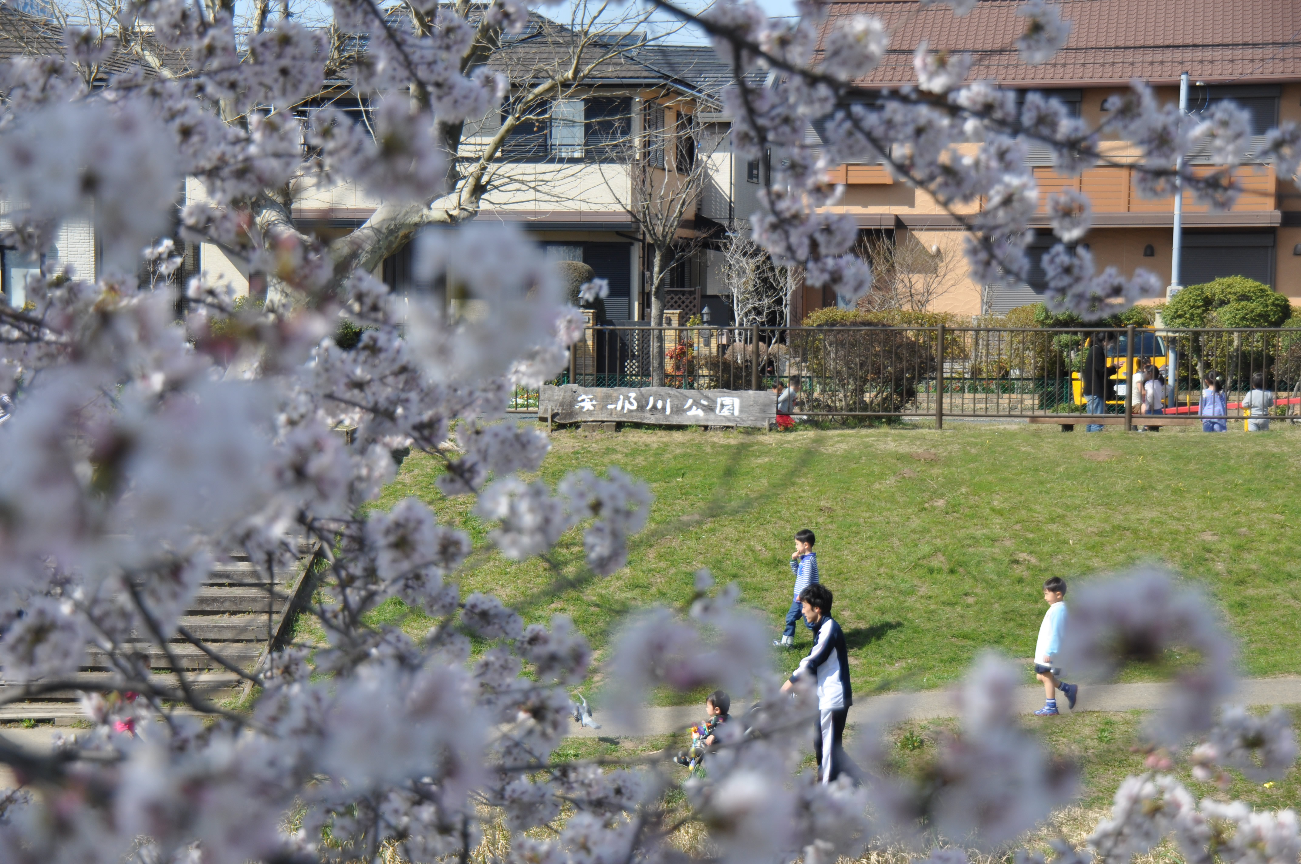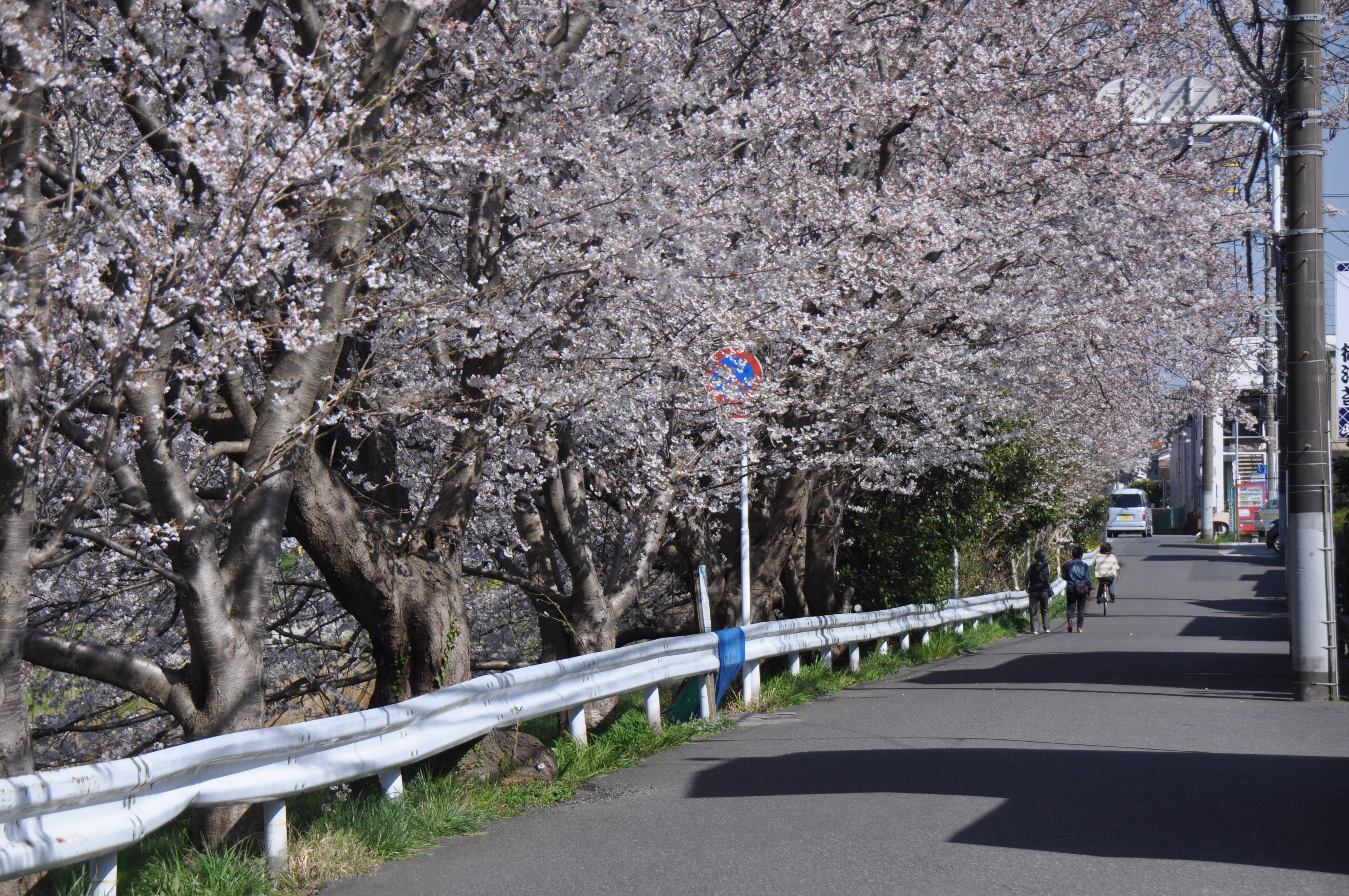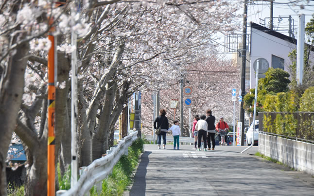 矢那川公園の真向かい桜の木が並んでいて歩きやすく桜を見ながら散歩は最適です