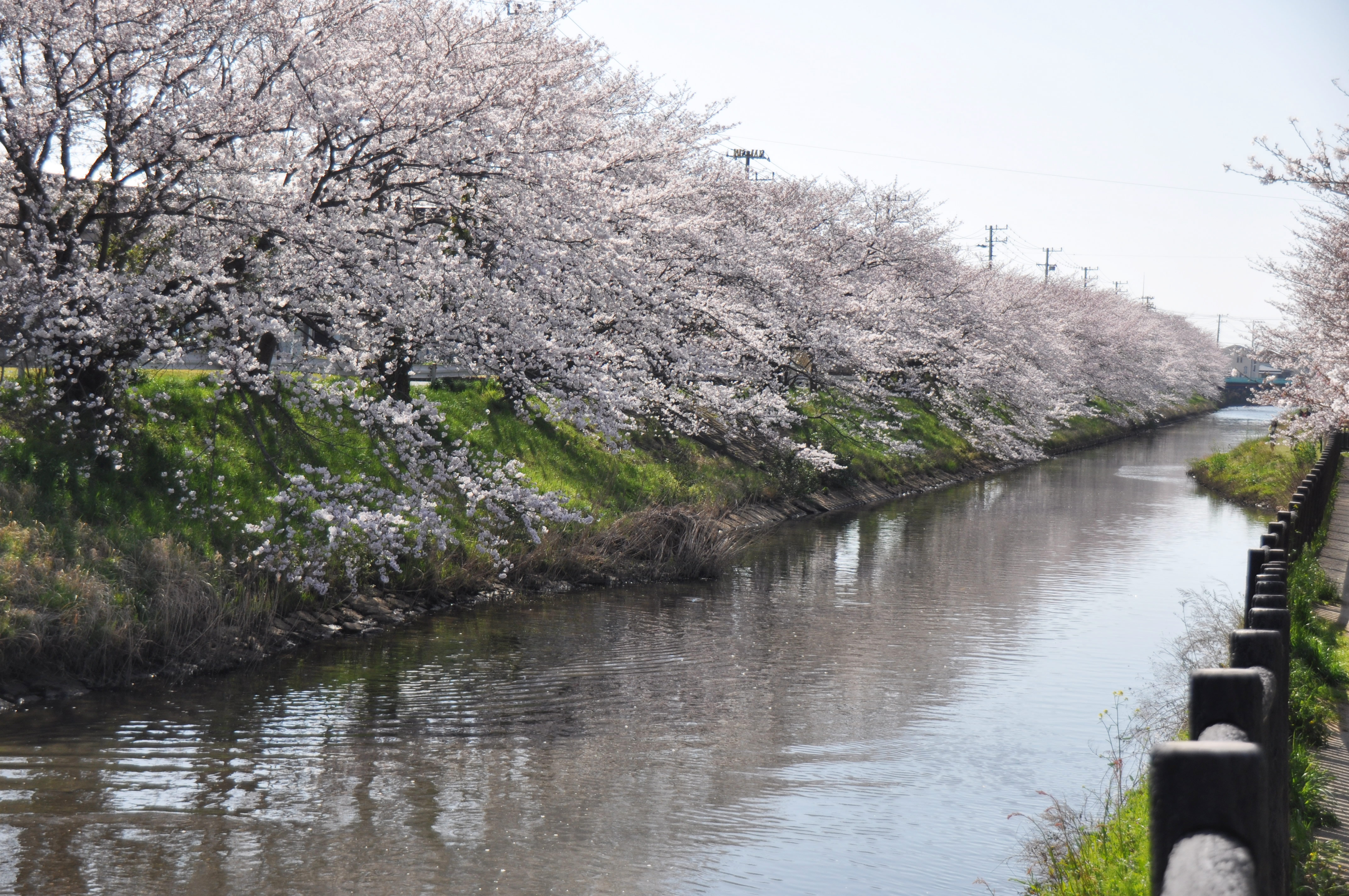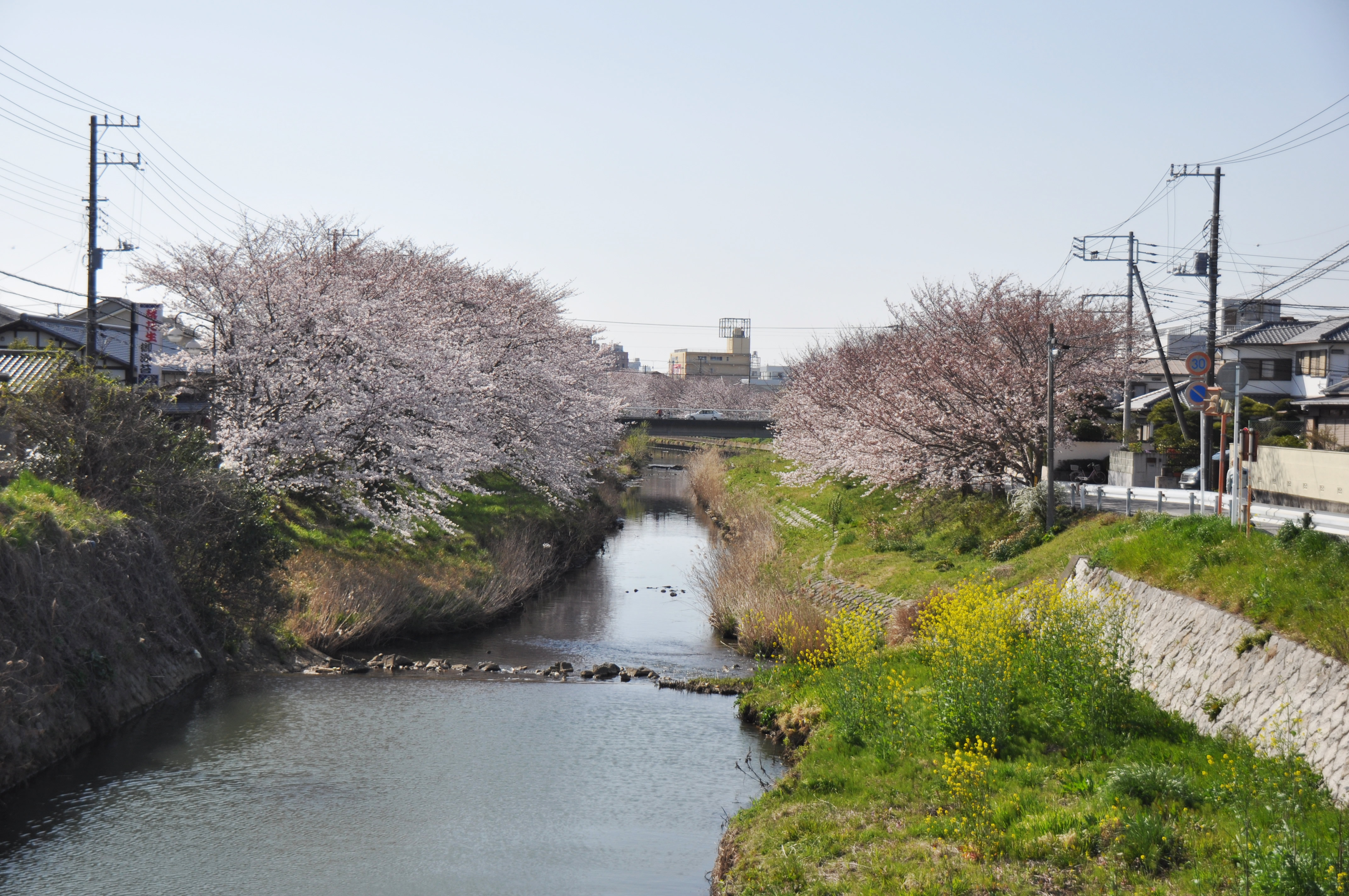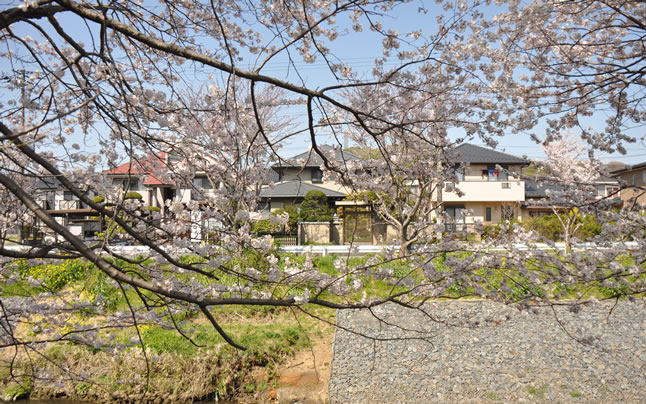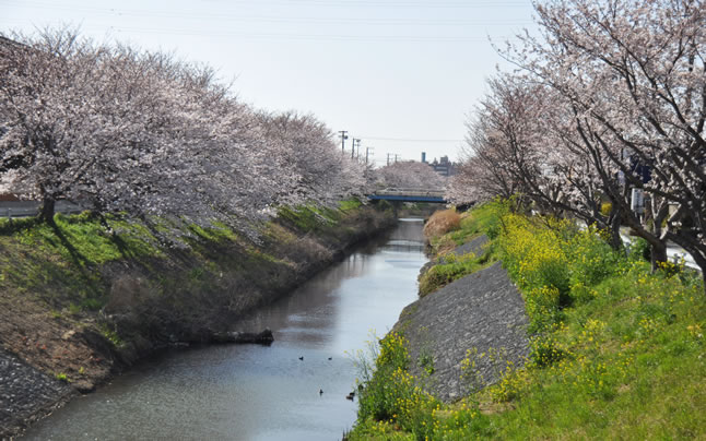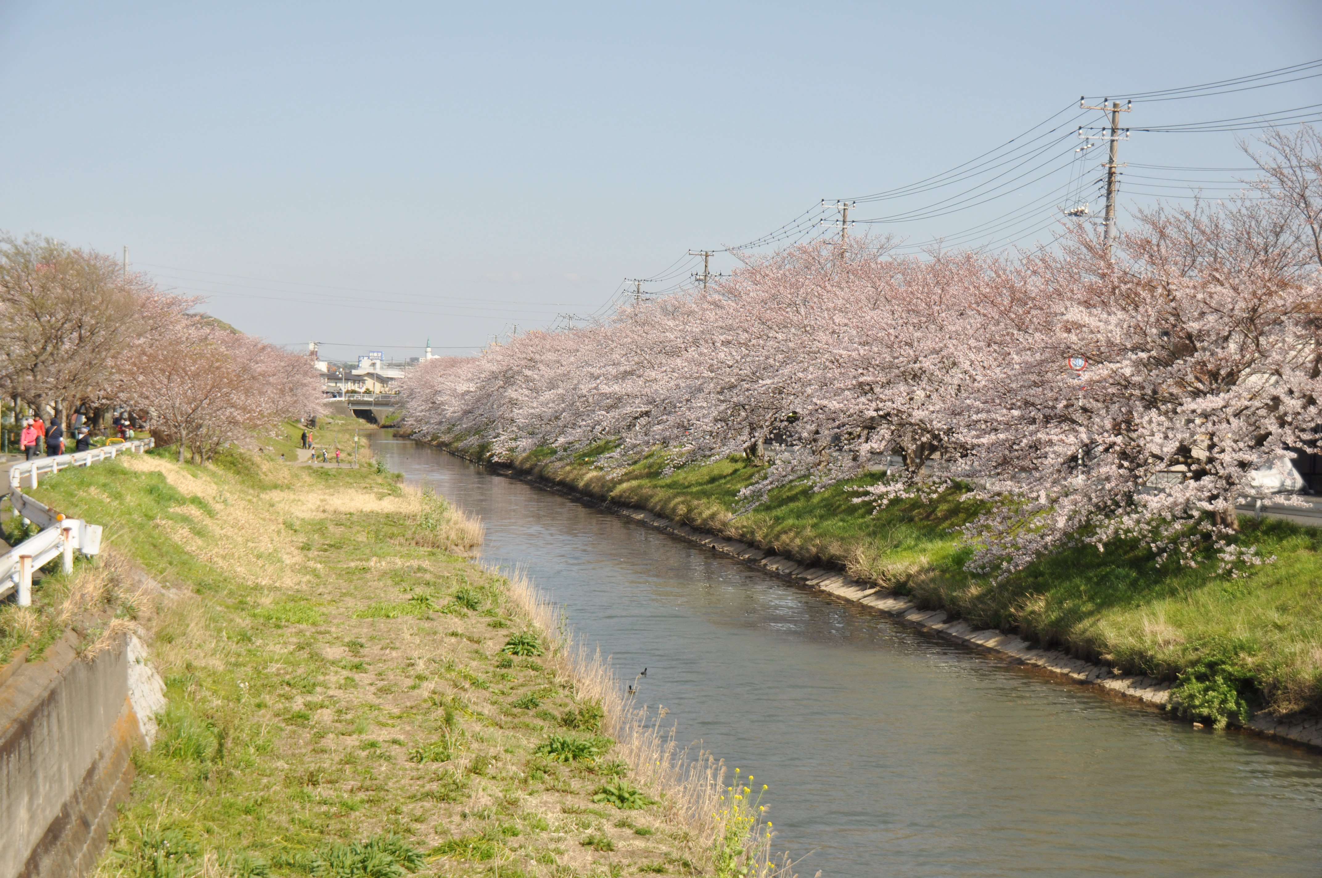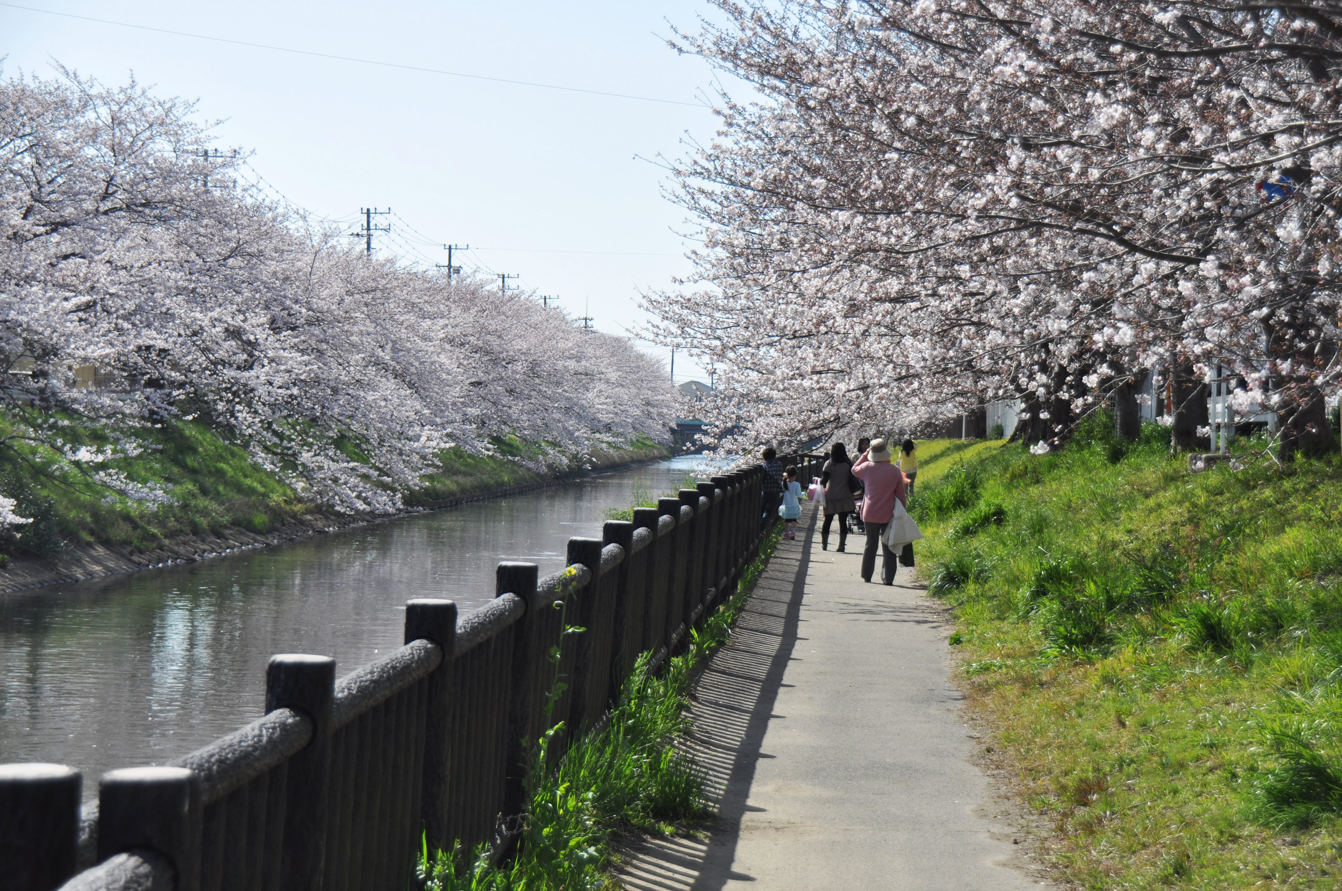 矢那川公園の真向かい桜の木が並んでいて歩きやすく桜を見ながら散歩は最適です