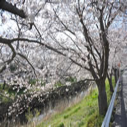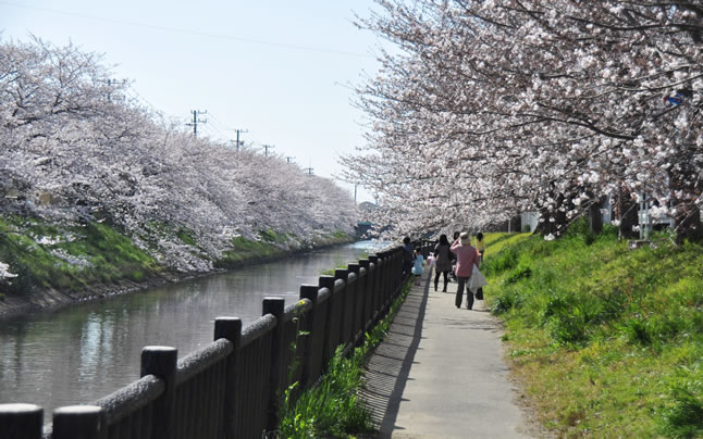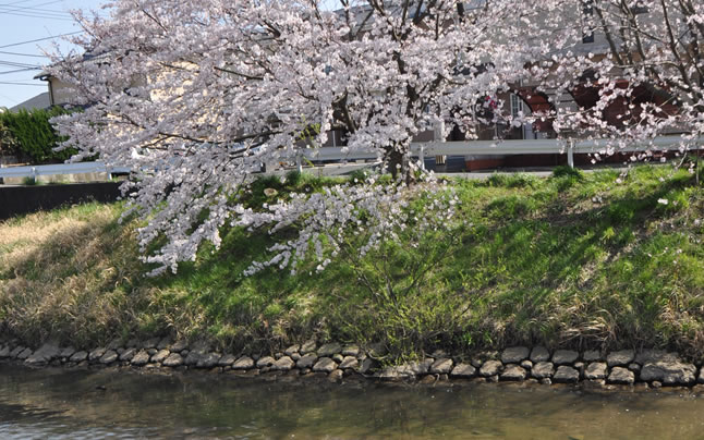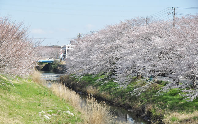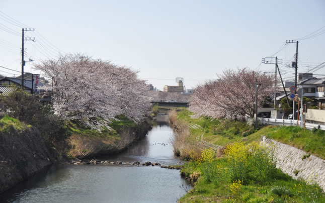 垂れ下がる桜をまじかに見られて匂いや触れて矢那川の桜を実感できます。