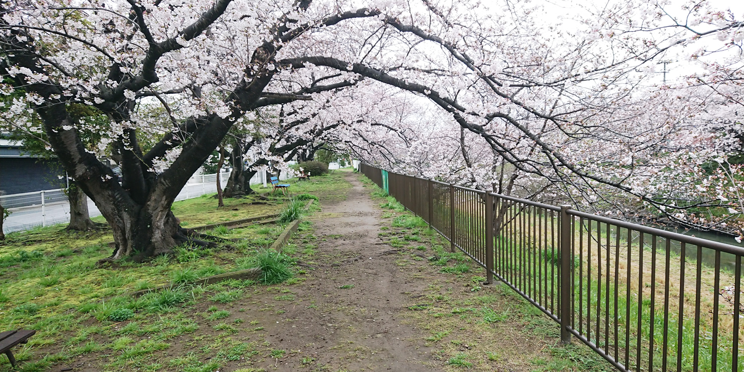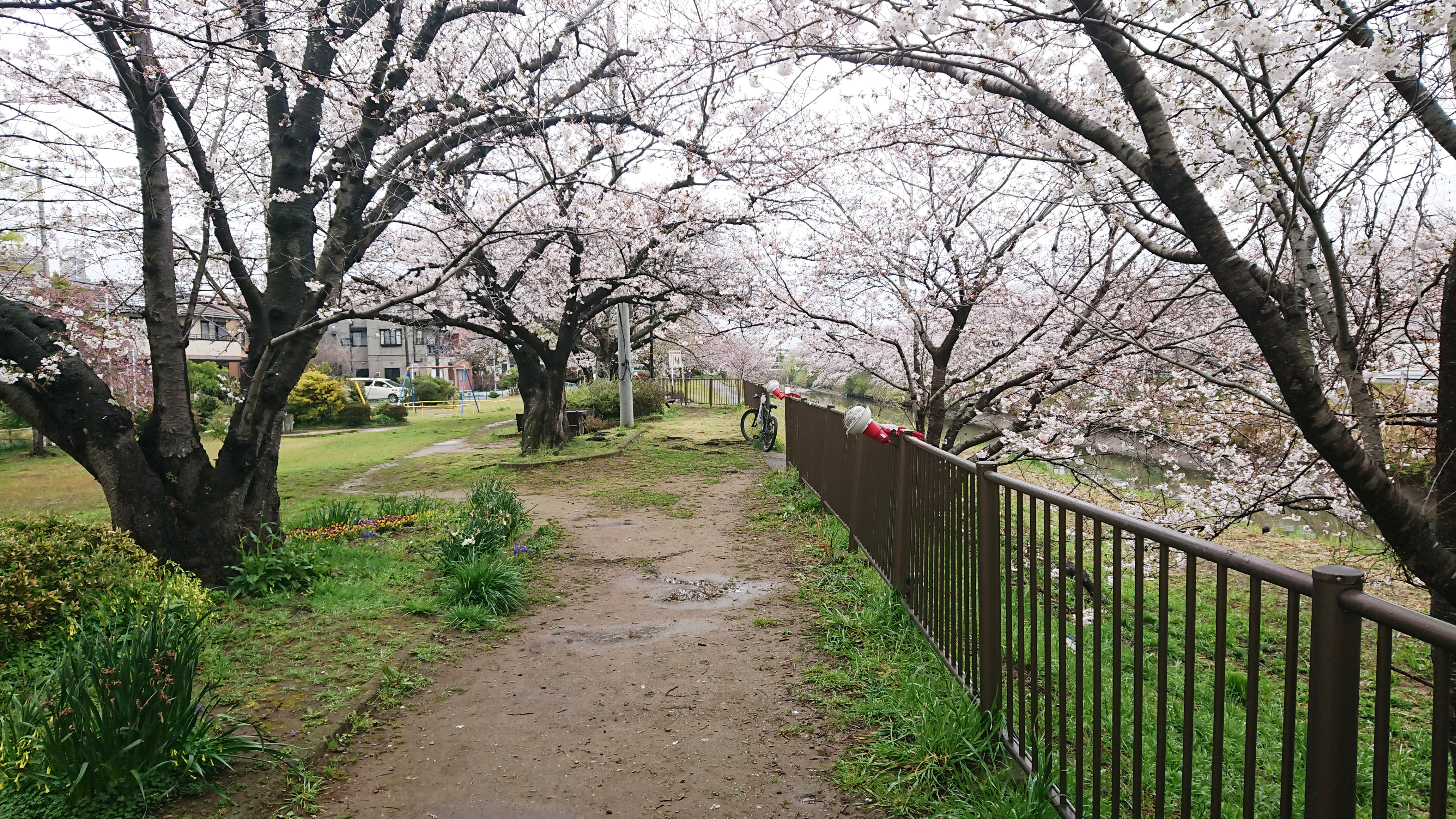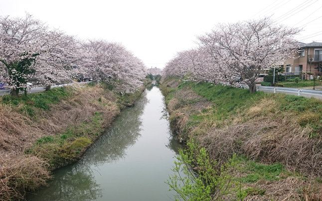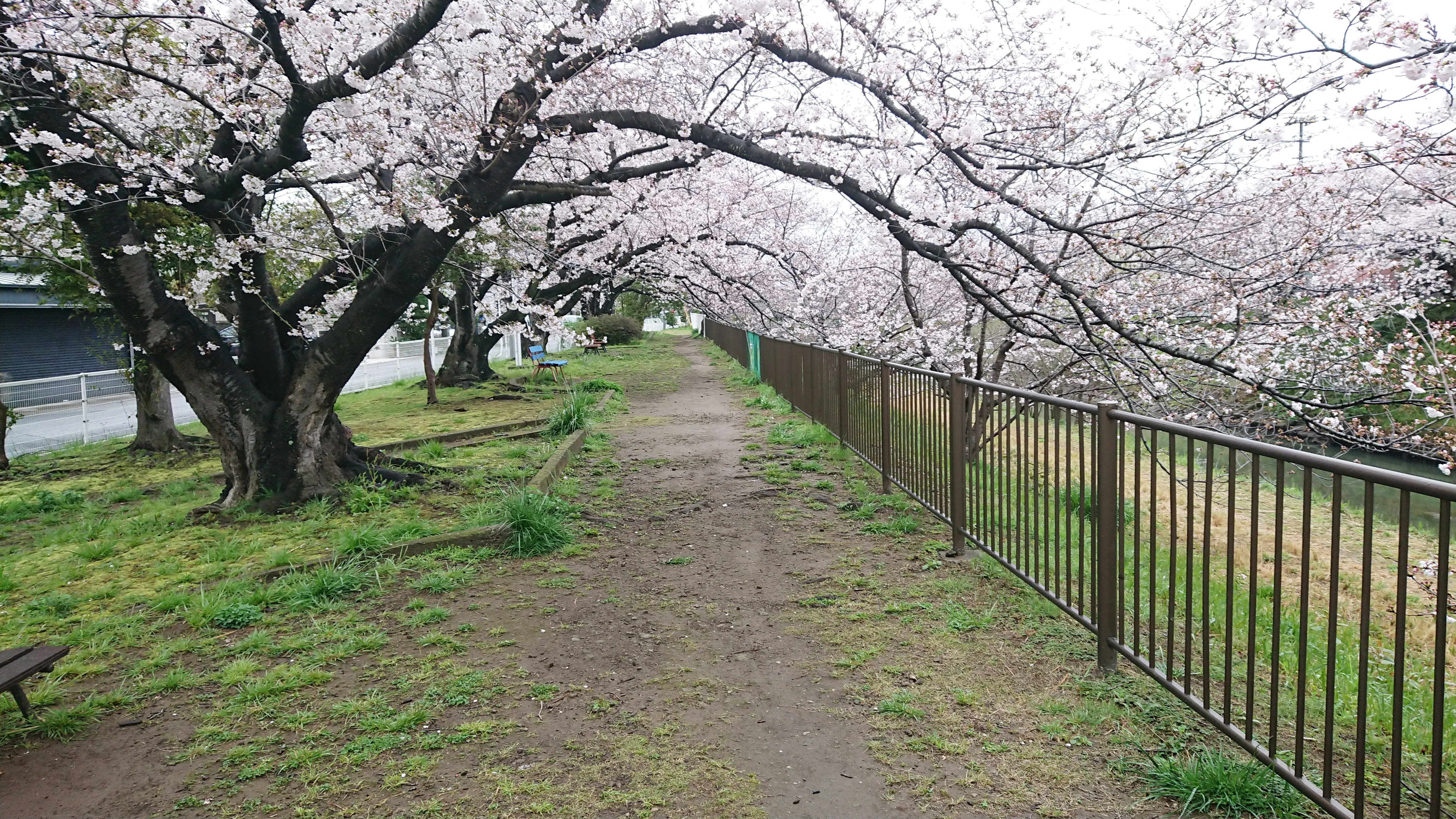 桜が比較的大きいのでトンネルのように通りを桜が覆っています。反対側は、桜がないのが残念です。ごみの投げ捨てがすごいです。