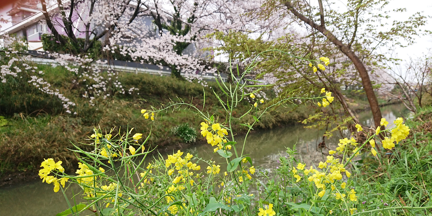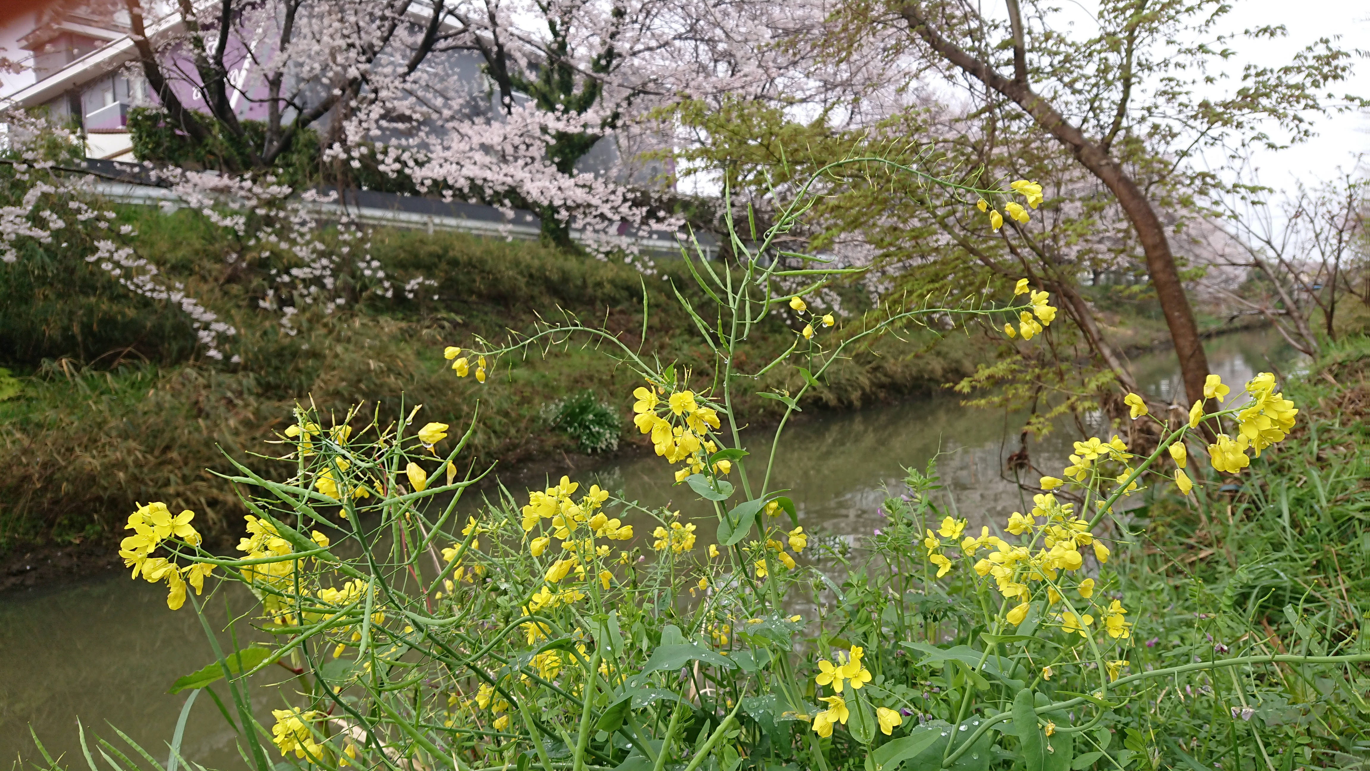 矢那川の土手沿いに菜の花が、数本さいていたので下まで降りて撮影しました。