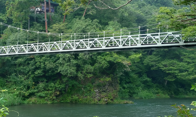 沢井園に行くとすぐ橋に出会います。多摩川8景にも選ばれている景色のいい場所。