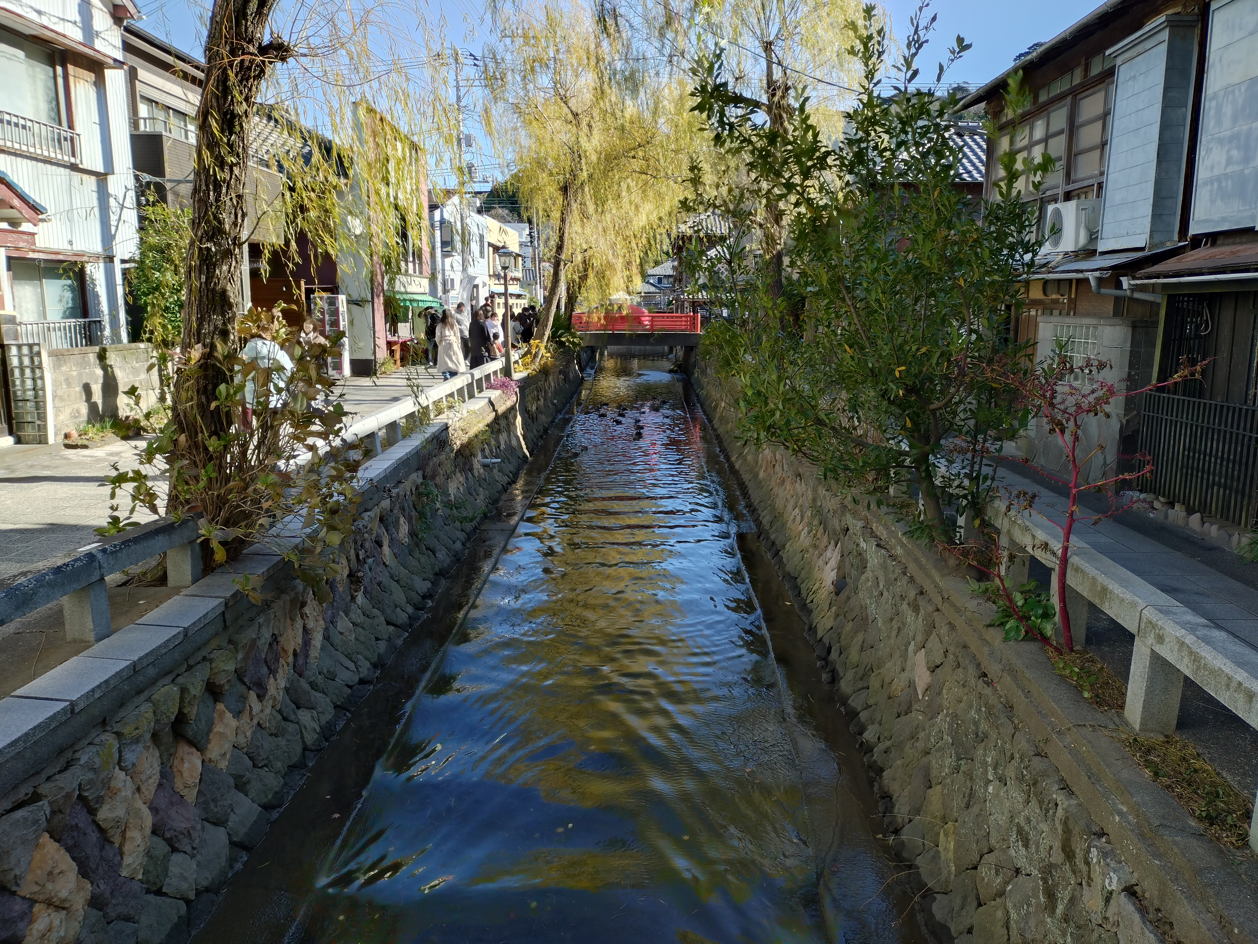 ペリーロードは、レトロな街並みを歩きながら歴史ロマンを感じました石畳の道沿いには、なまこ壁や伊豆石造りの建物が並び、当時の面影を色濃く残しています。柳並木が揺れる風景は、どこか異国情緒を感じます。