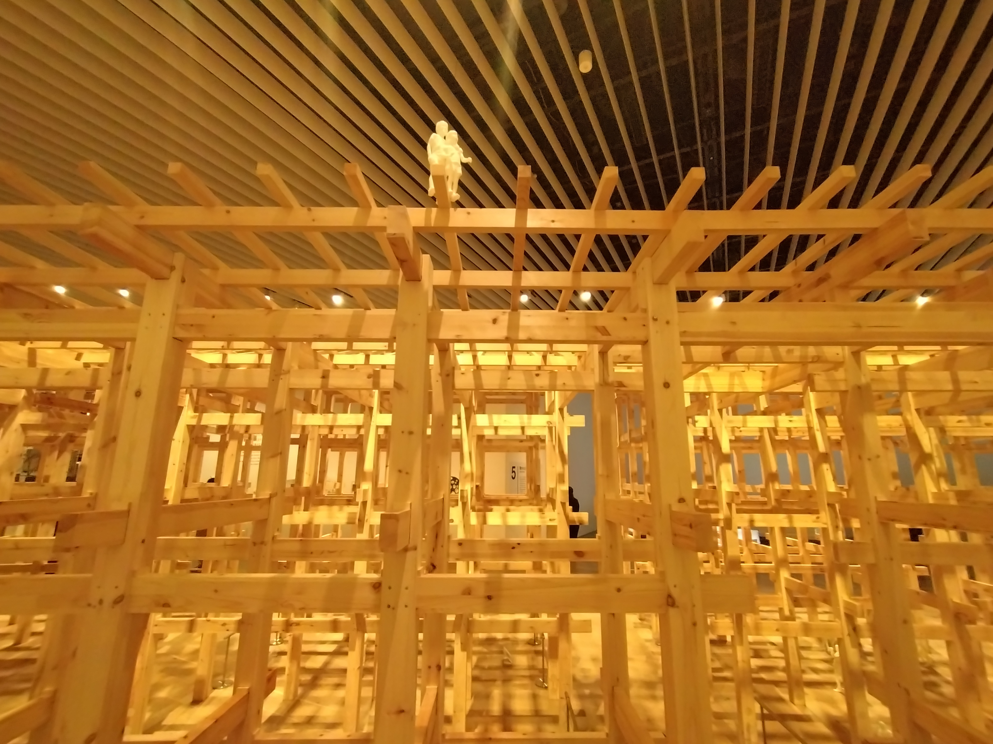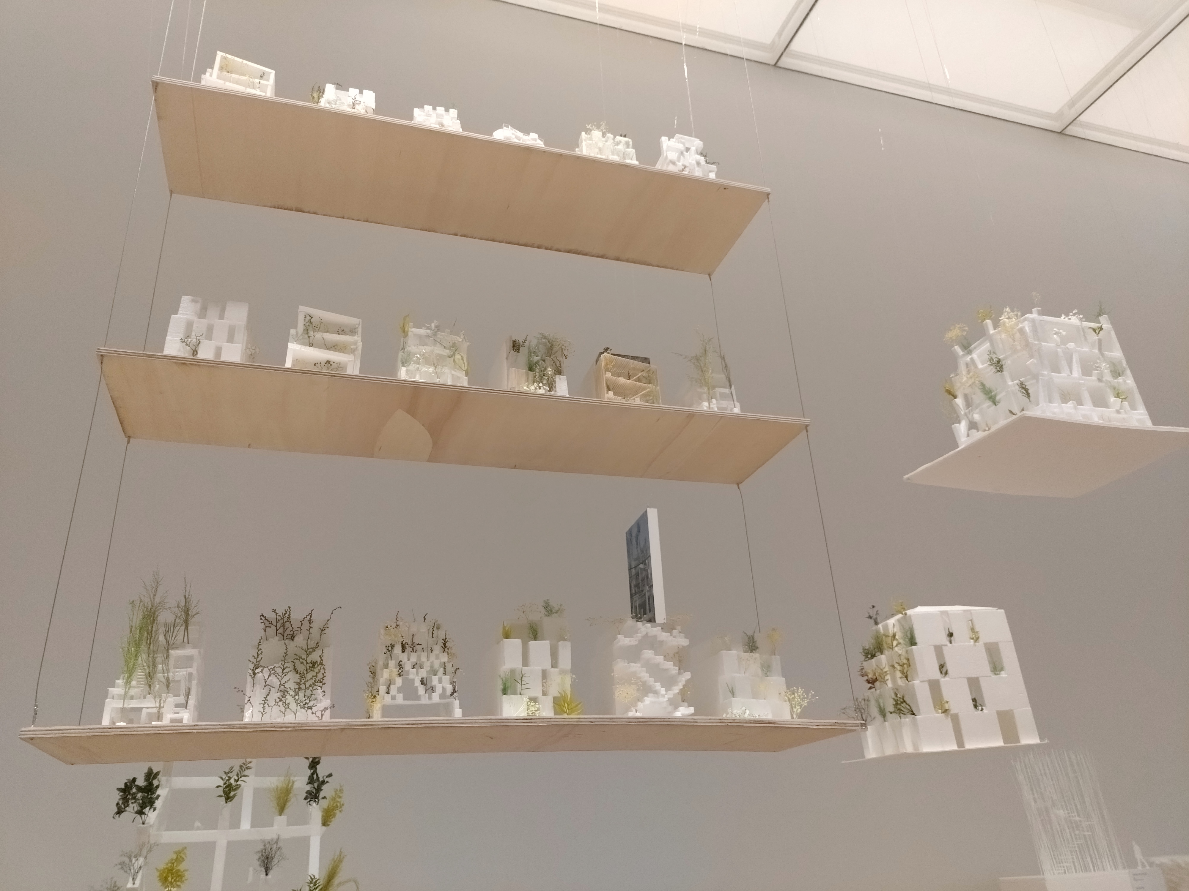 天井から吊り下げられているのでよく見られませんが建物の模型といううよりオブジェのような感じです。」