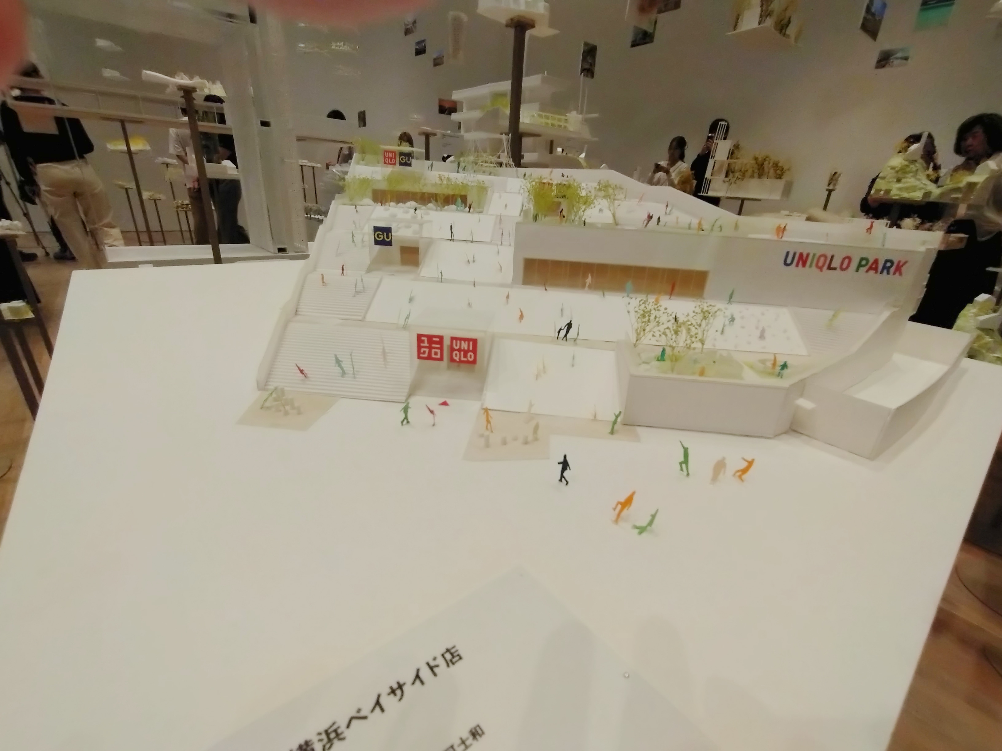 大屋根リングの模型に人形が遊び心が見られます。