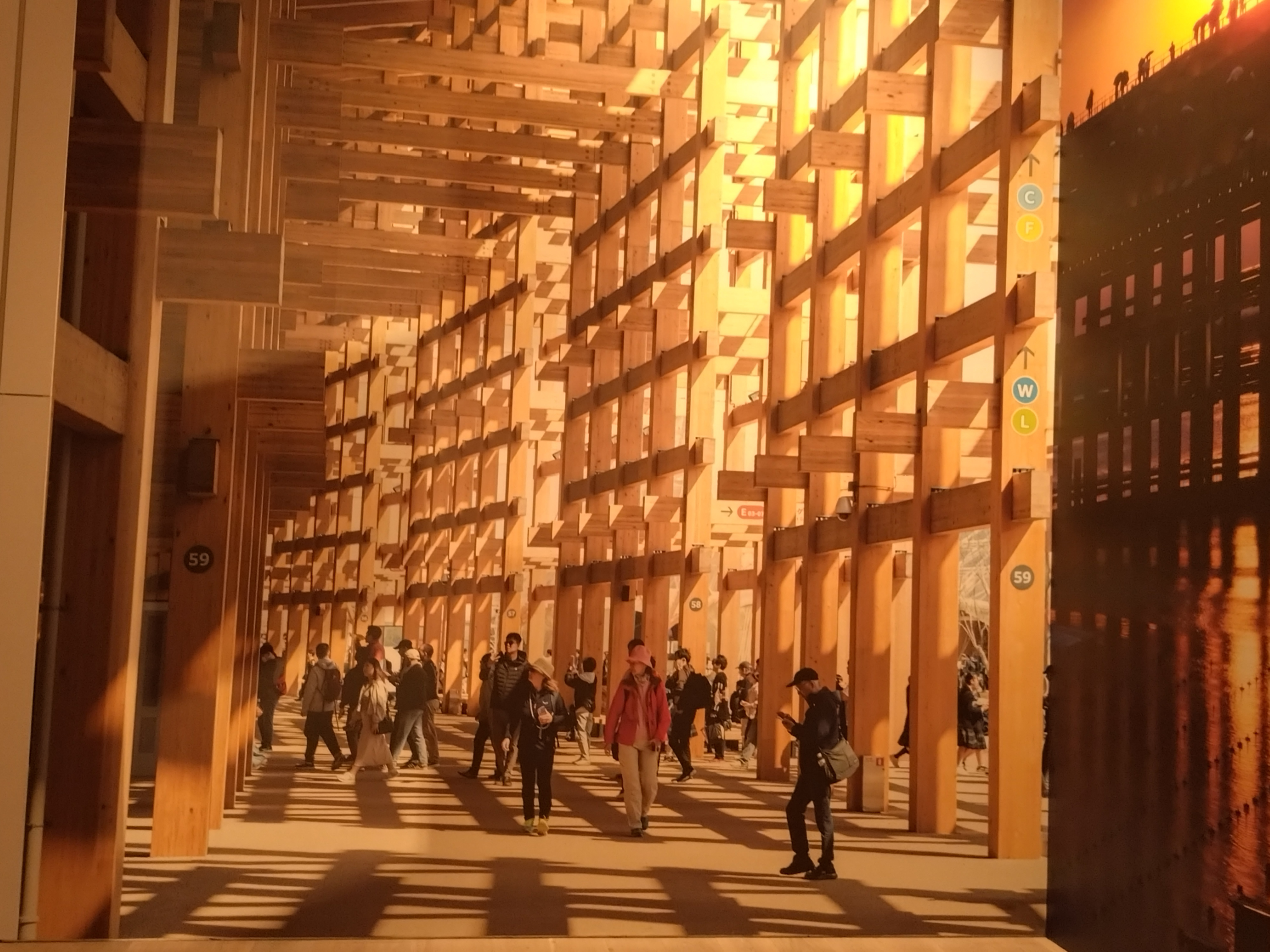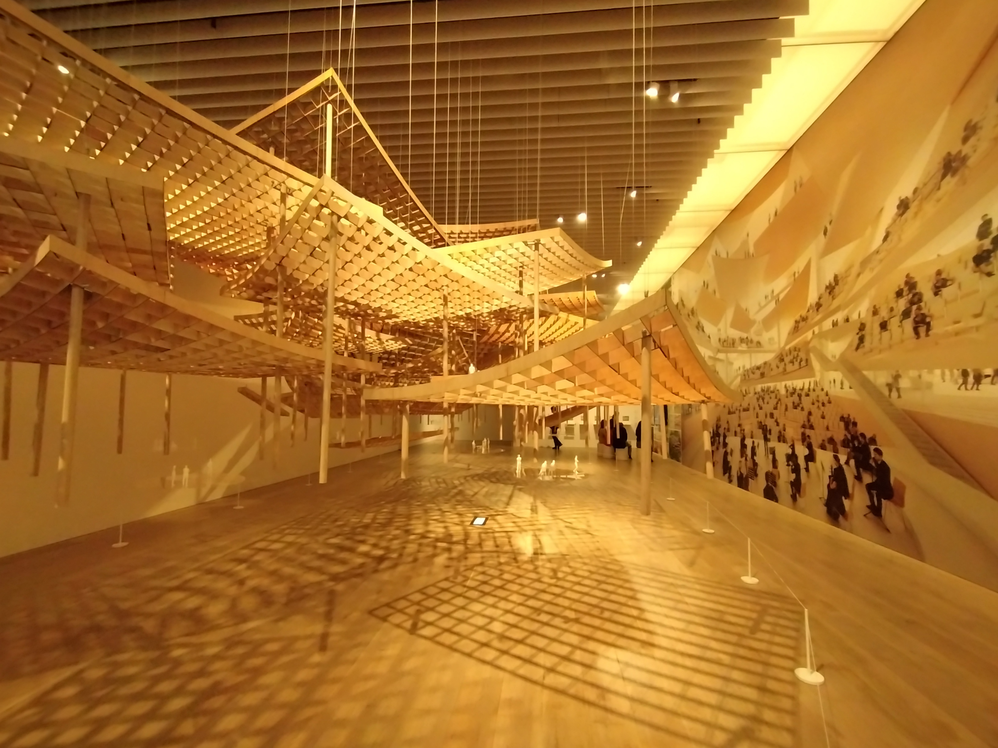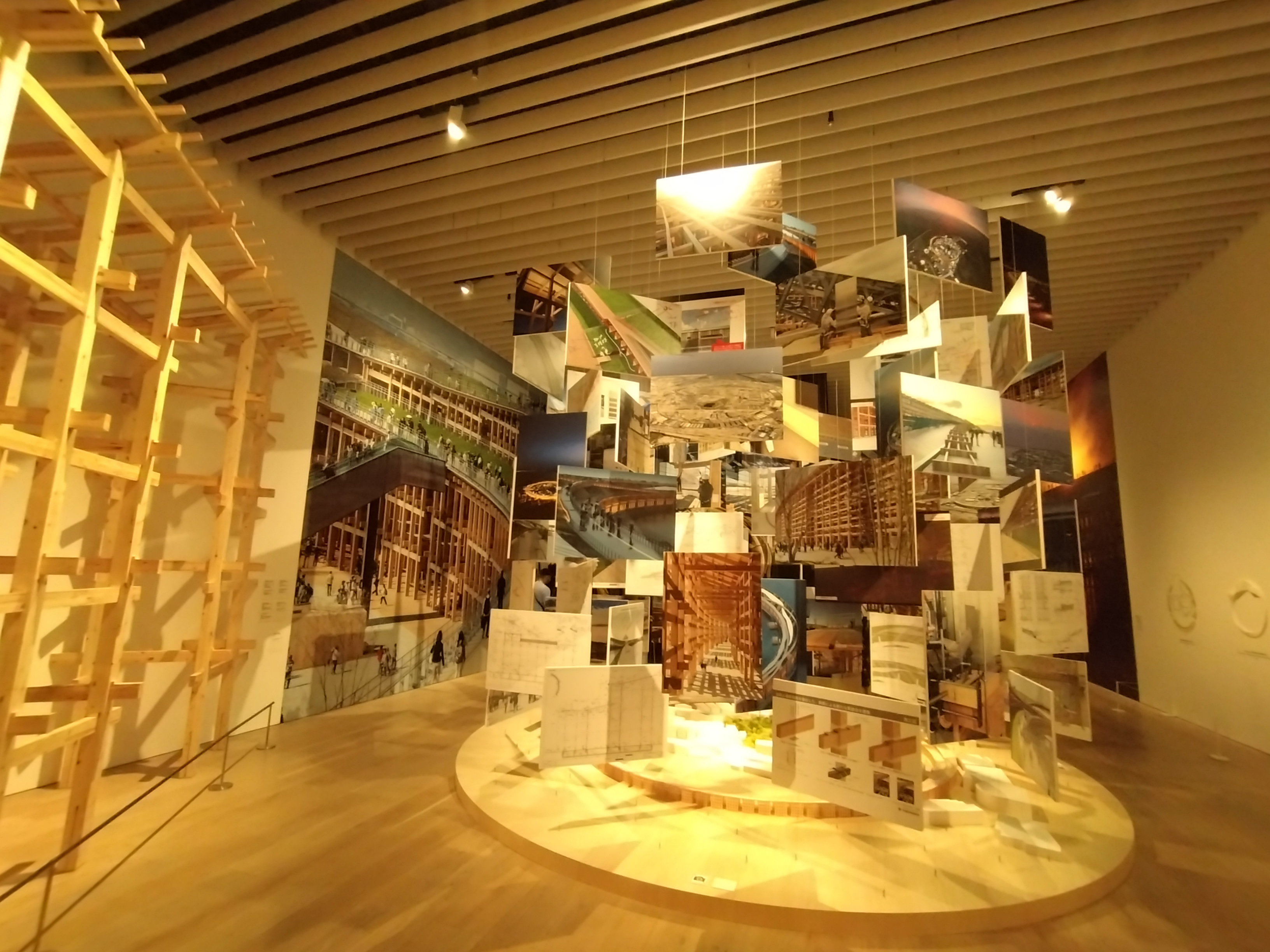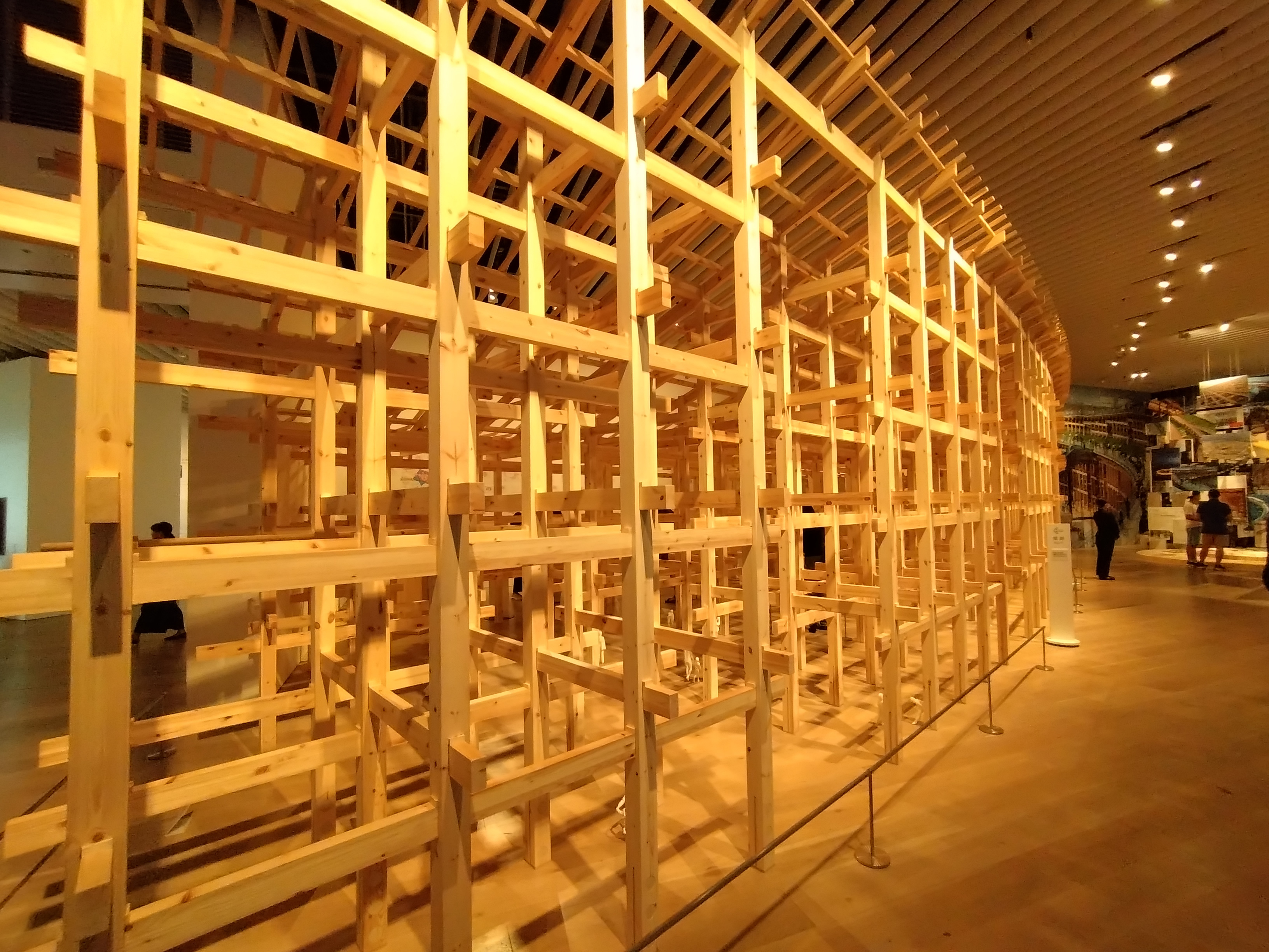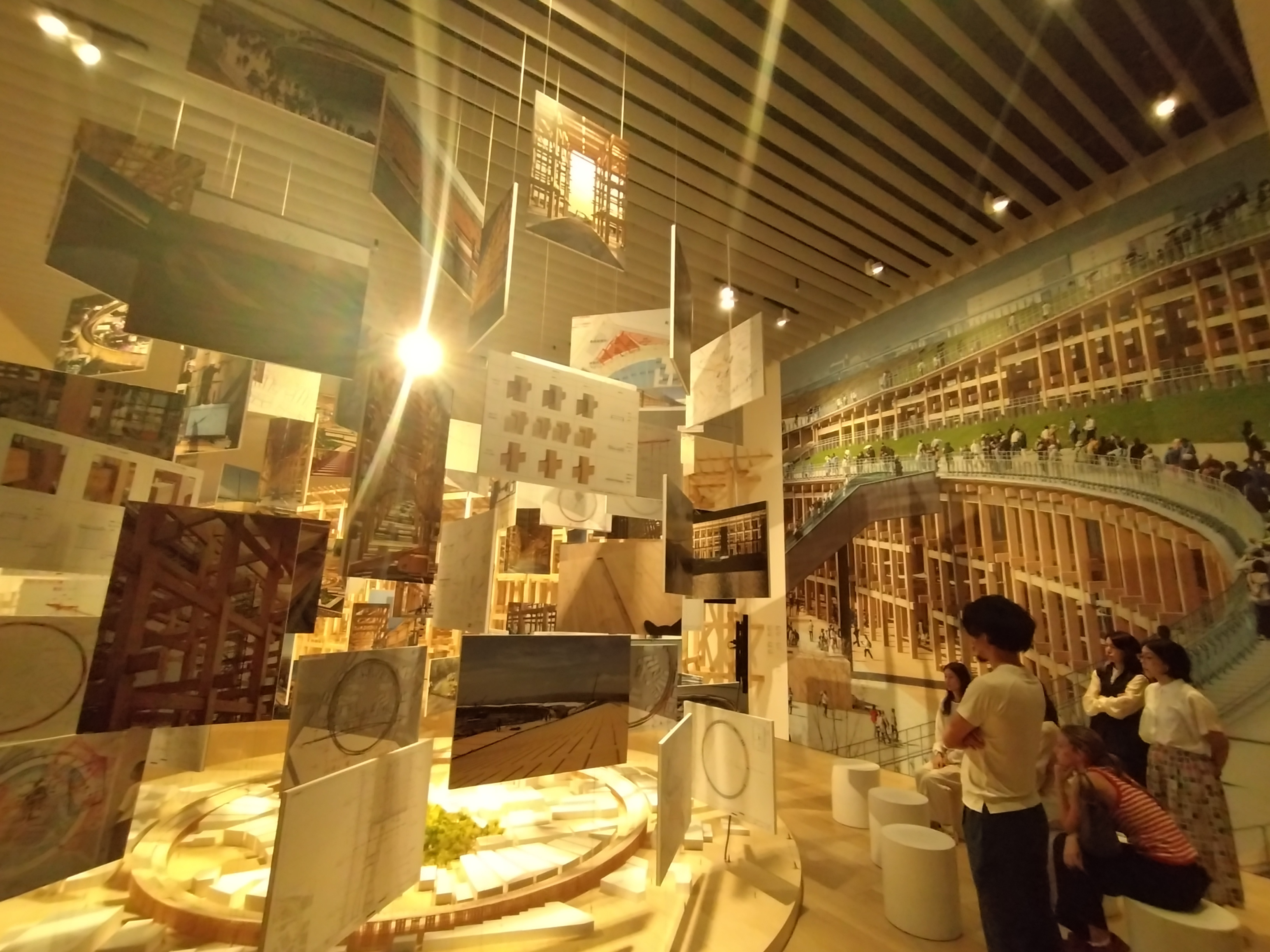 壁一面の大屋根リングの写真 まるで本当の大屋根リングの下にいるかのように感じます。