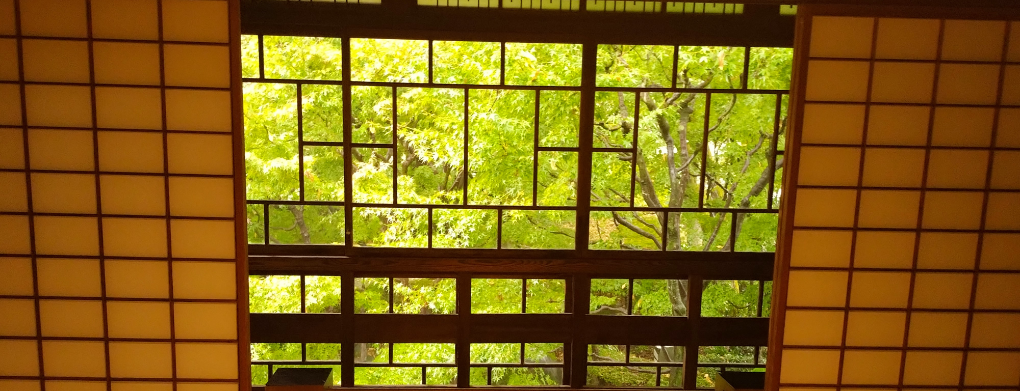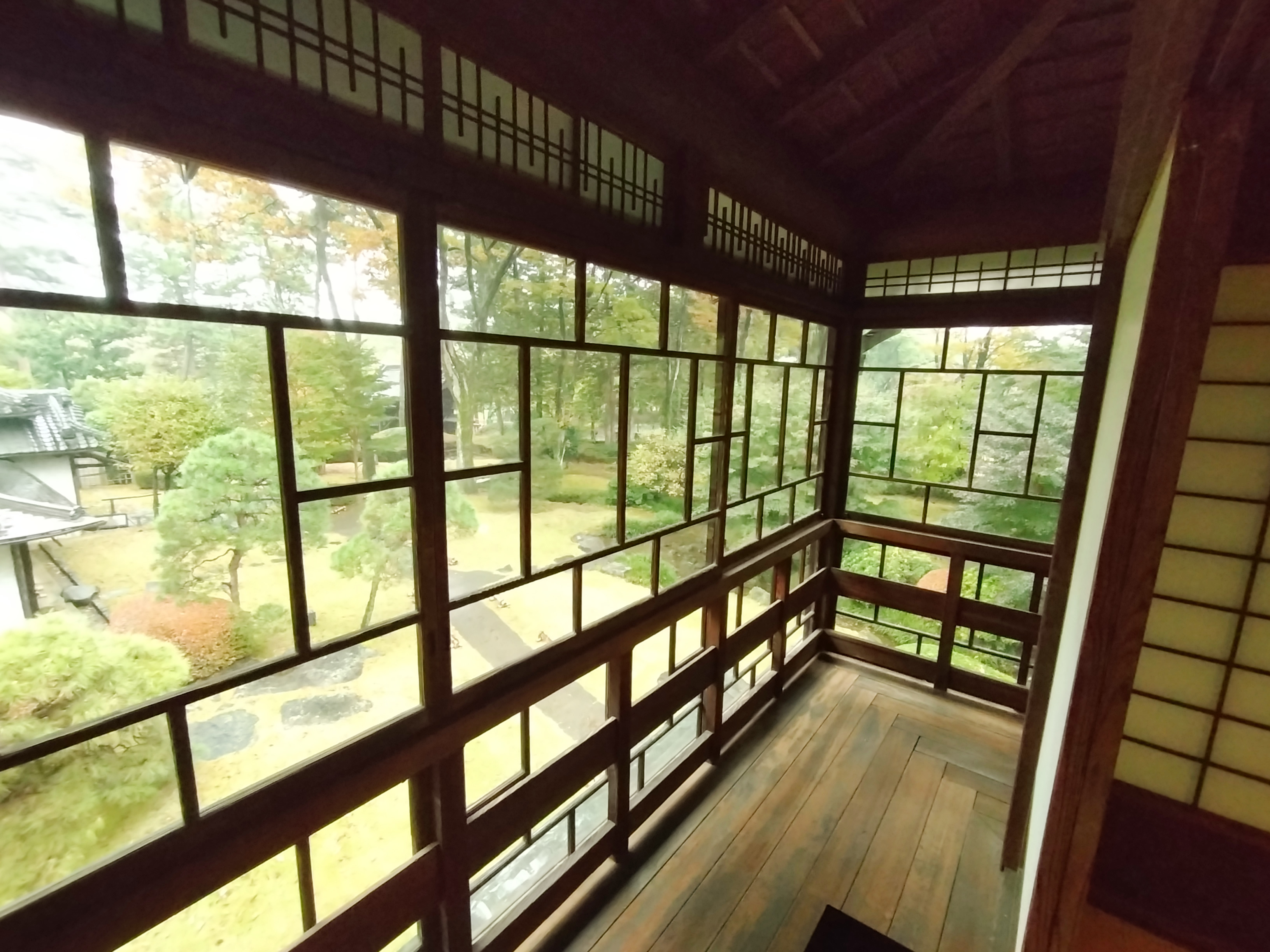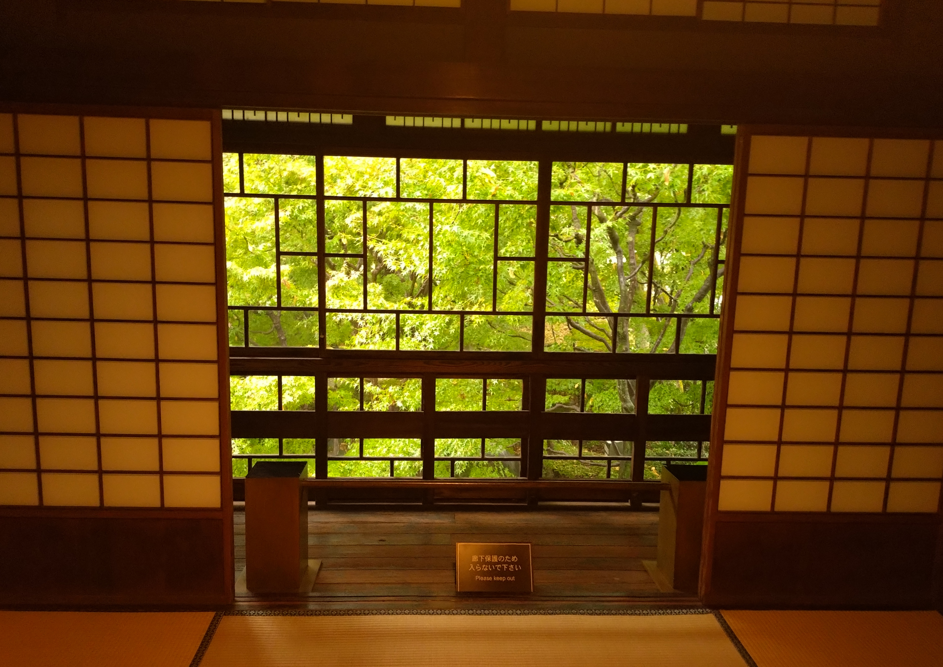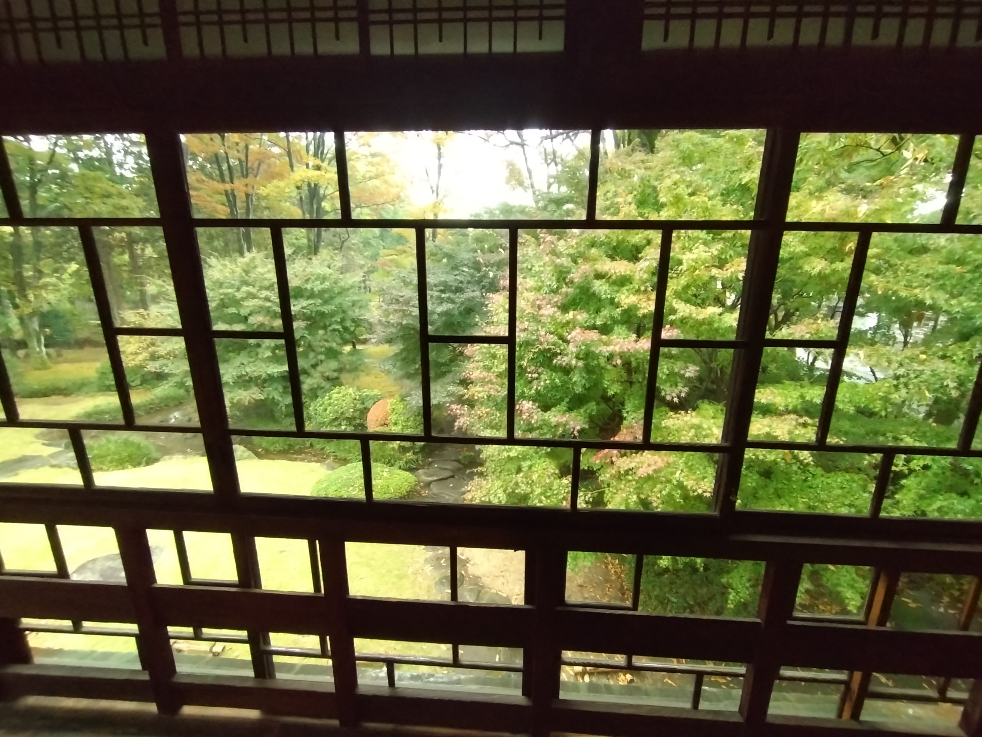 2階・縁側に面した窓ガラスから見る庭園は絶景です。